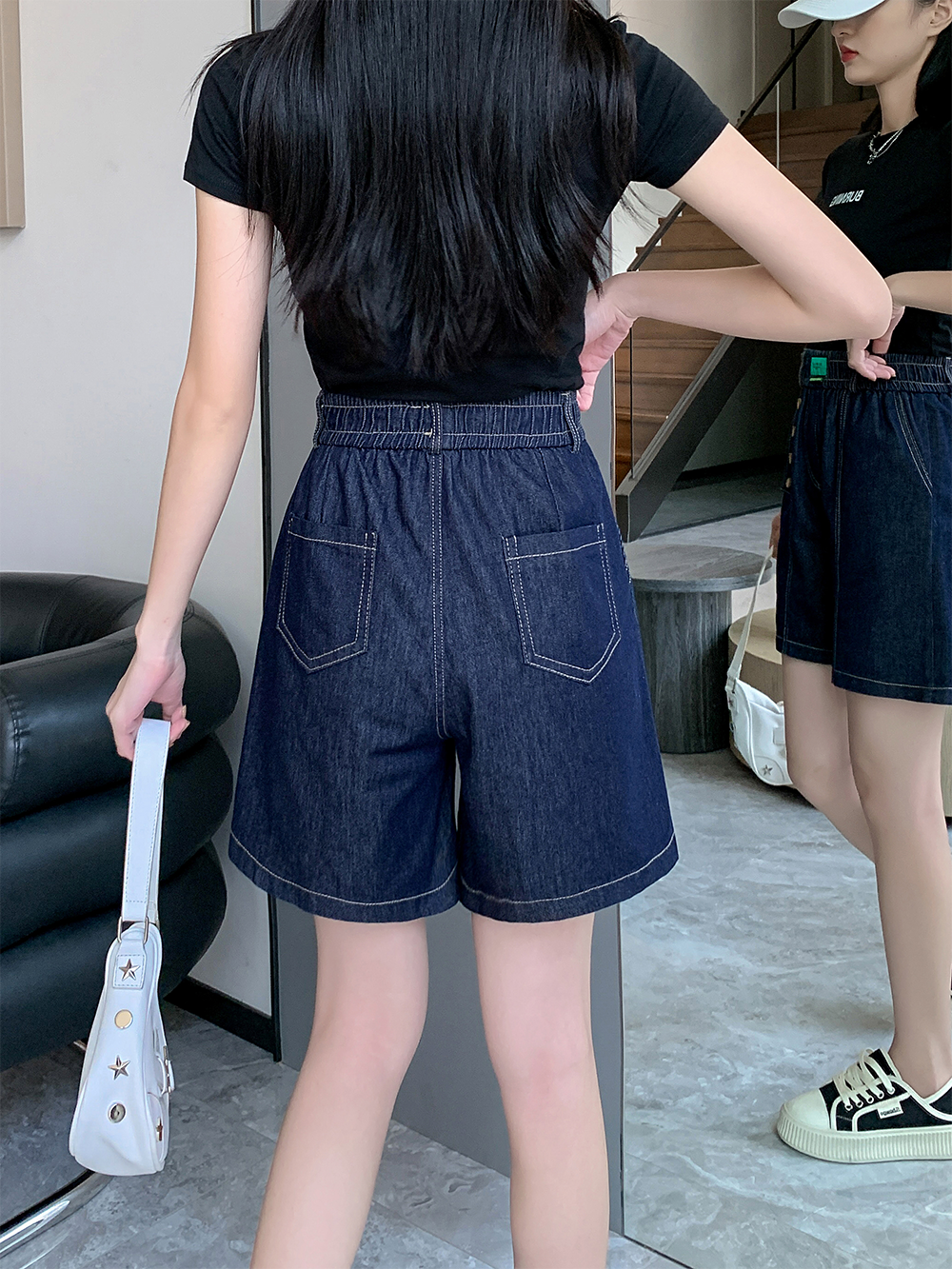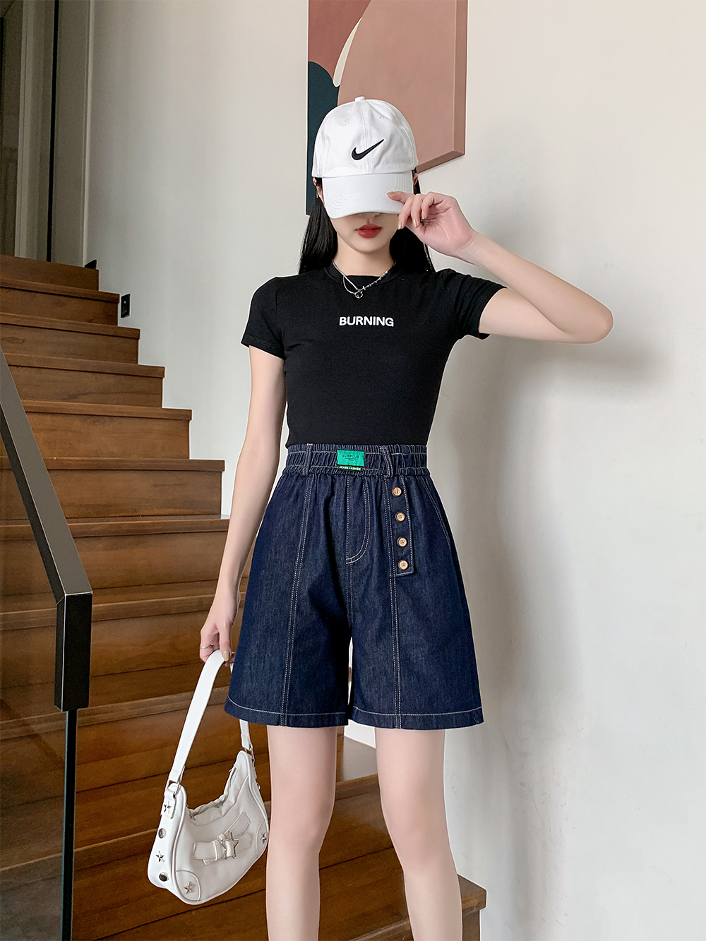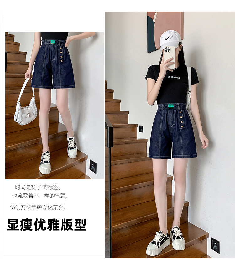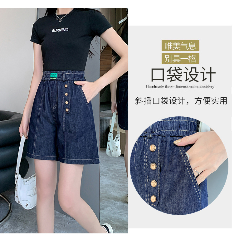 PF4511#女夏季款胖妹妹大码松紧腰弹力牛仔短裤高腰阔腿五分裤女裝批發 服裝批發 服裝貨源
