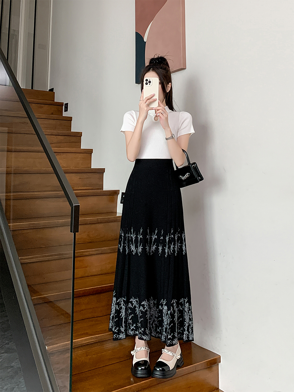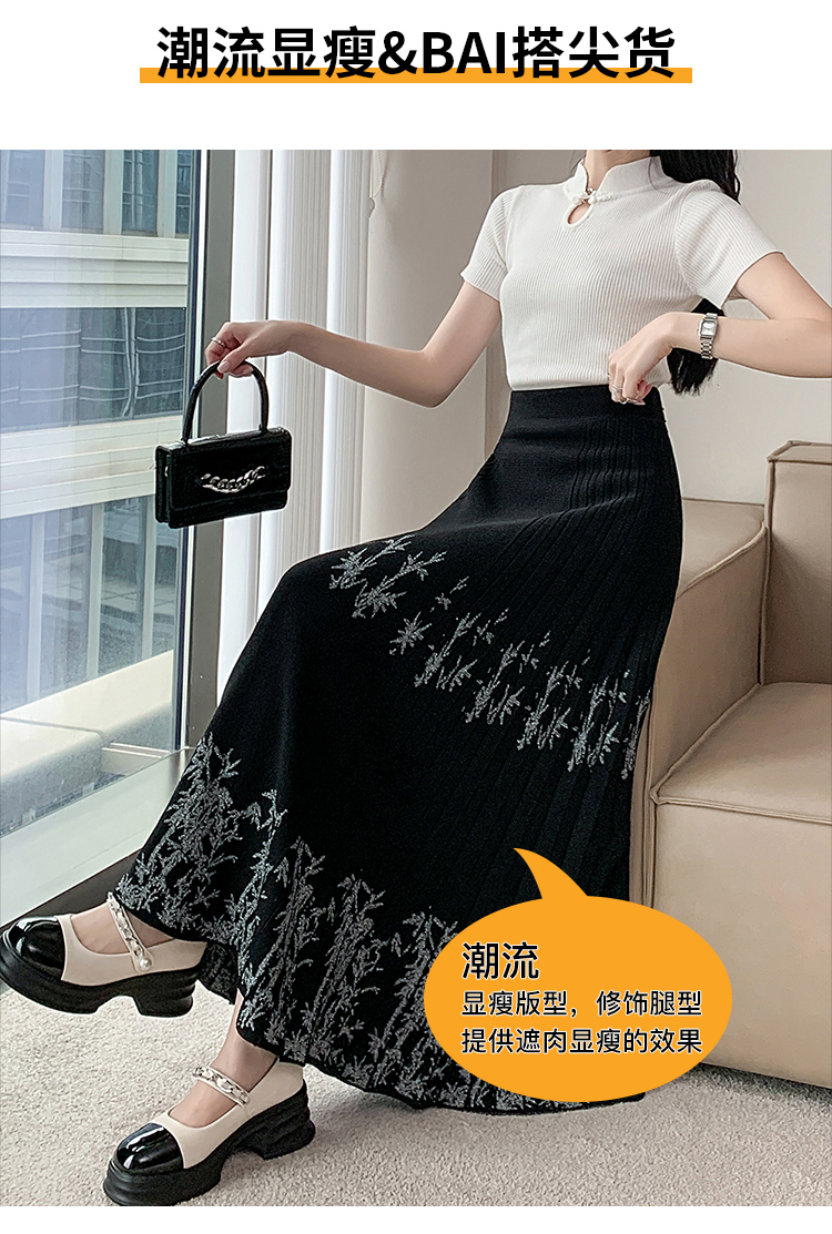 PF4514#春夏新款高品质大码简约半身裙女胖MM冰丝针织马面裙女裝批發 服裝批發 服裝貨源