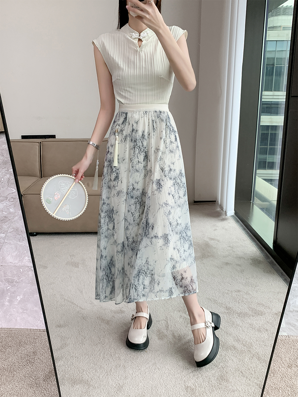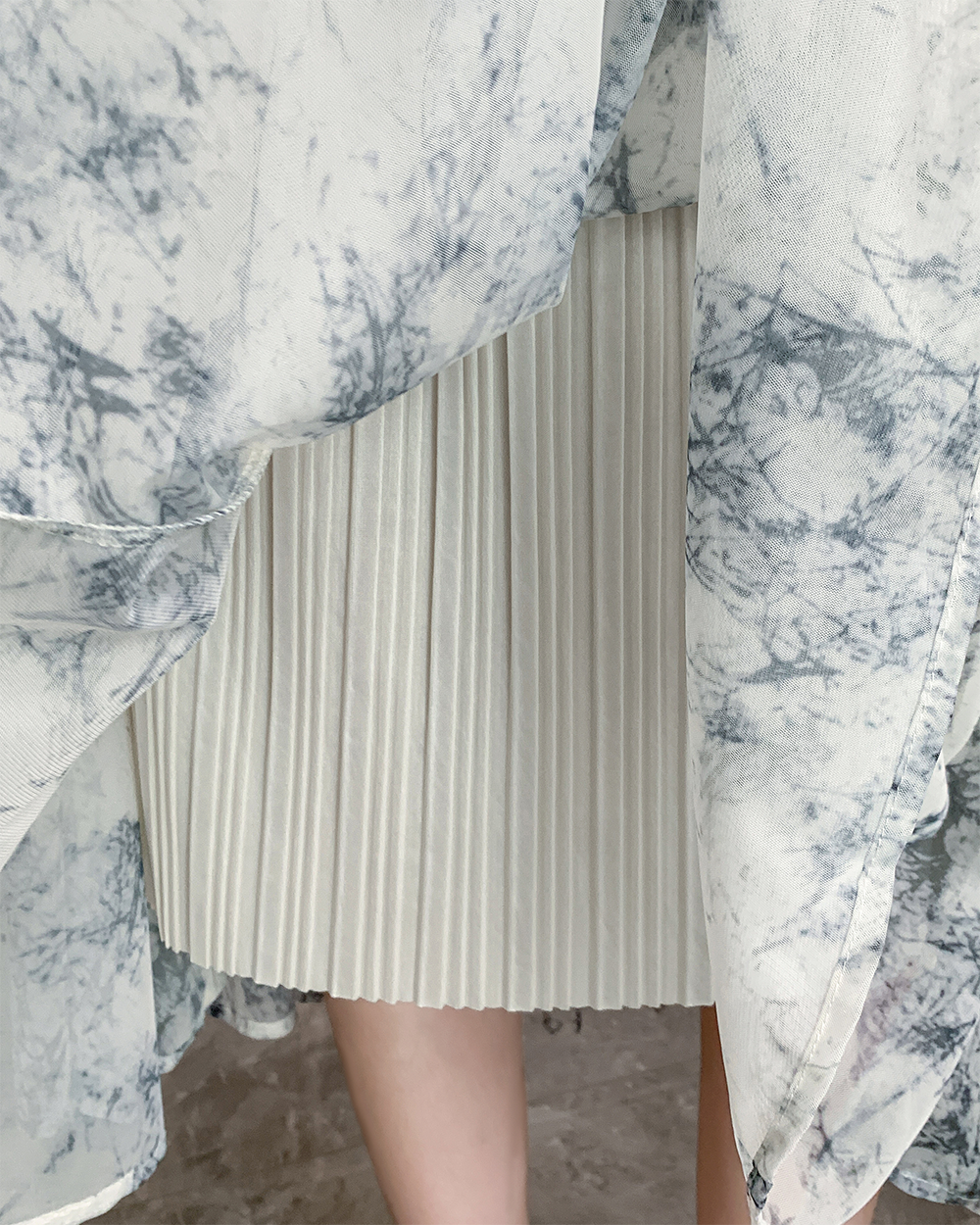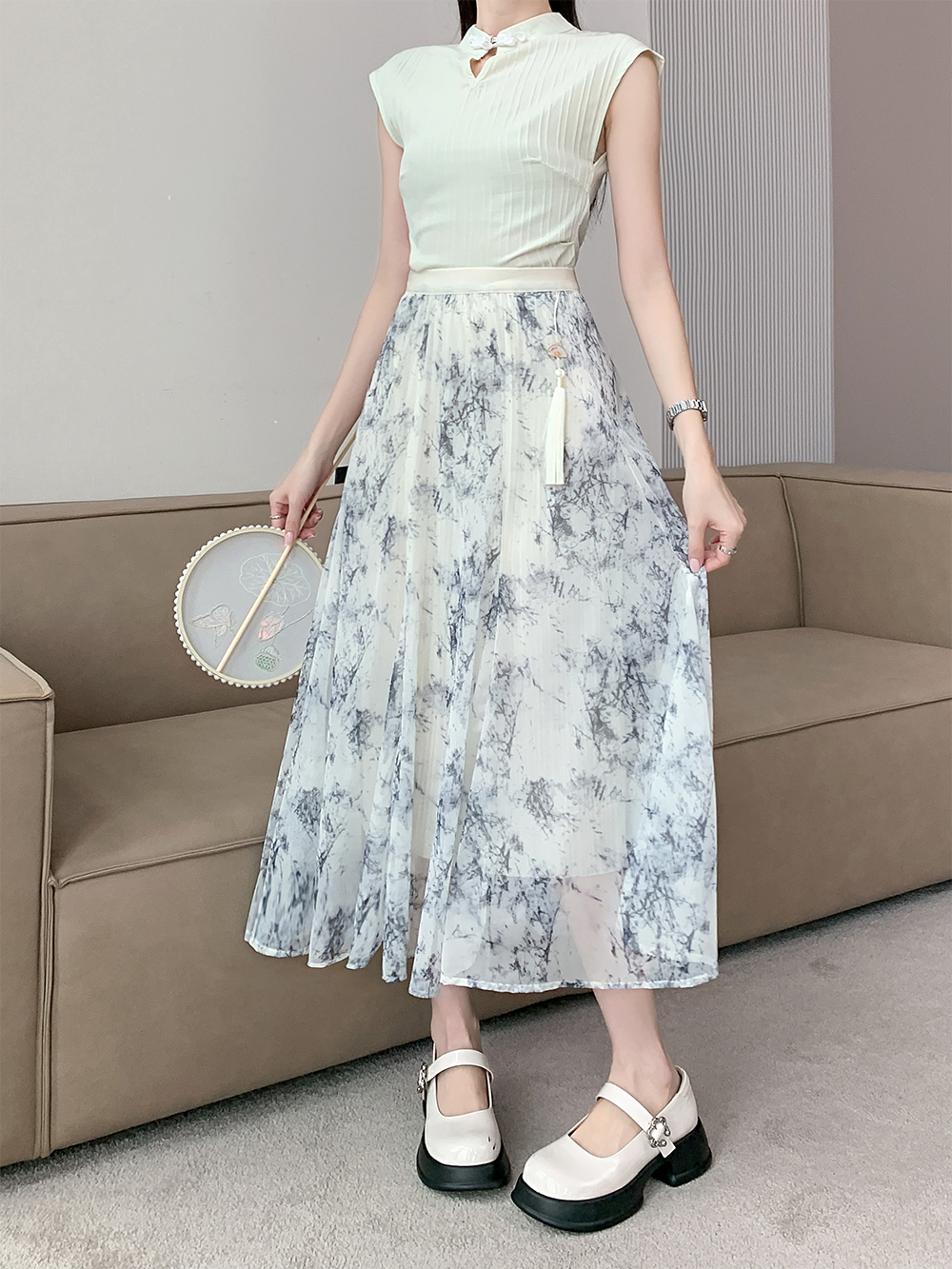 PF4516#春夏新款国风水墨印花网纱两面穿半身裙高腰显瘦大摆裙女裝批發 服裝批發 服裝貨源