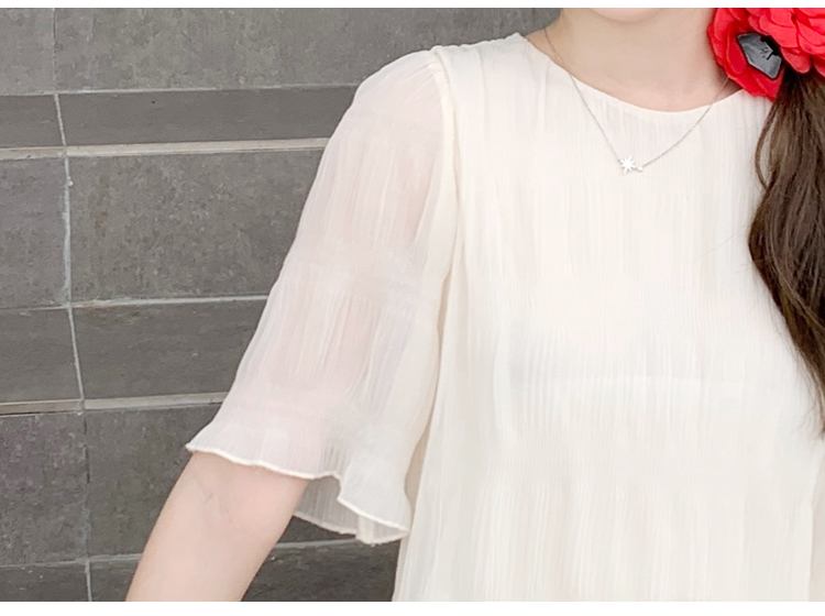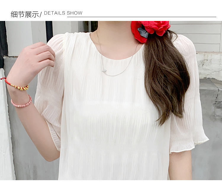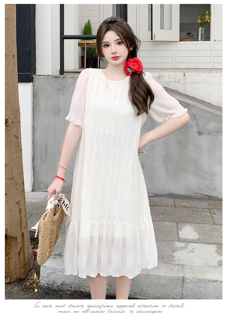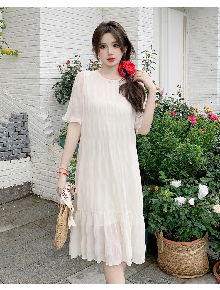 PF4526#夏季高级感法式压褶连衣裙大码胖MM显瘦遮肉中长款仙女裙女裝批發 服裝批發 服裝貨源