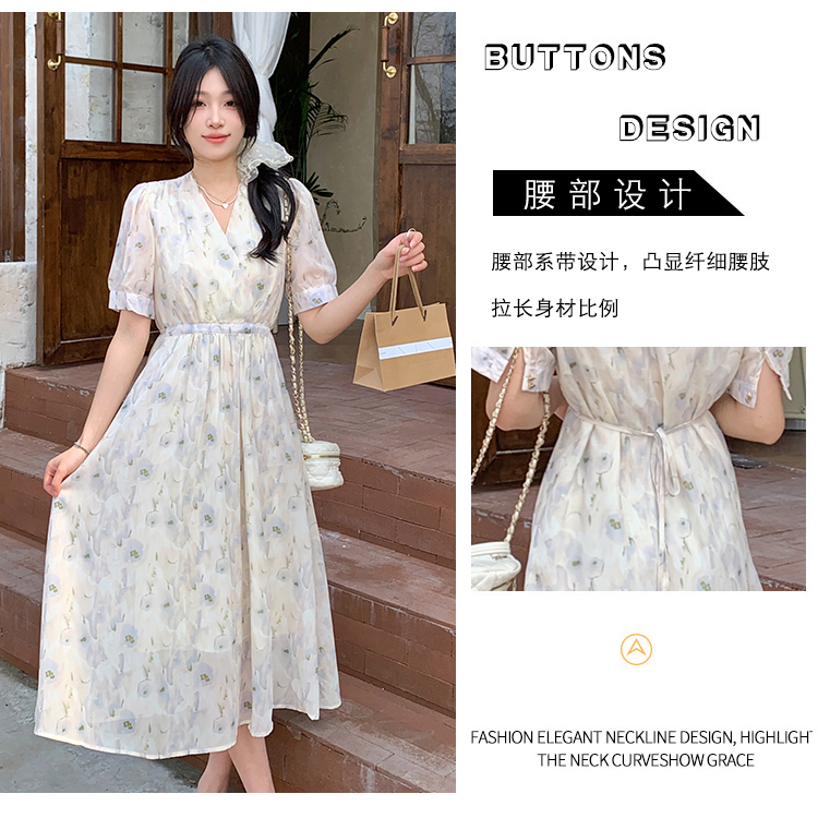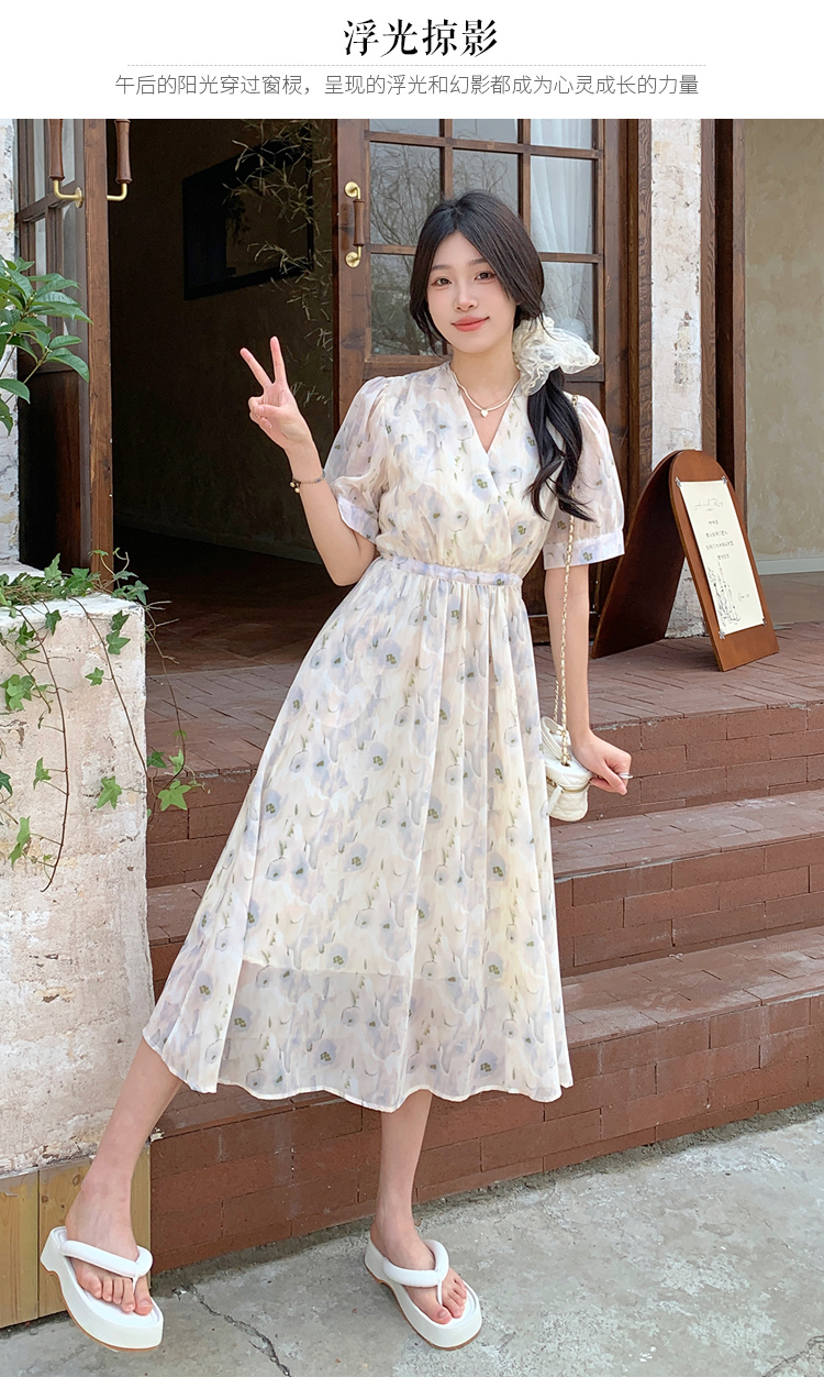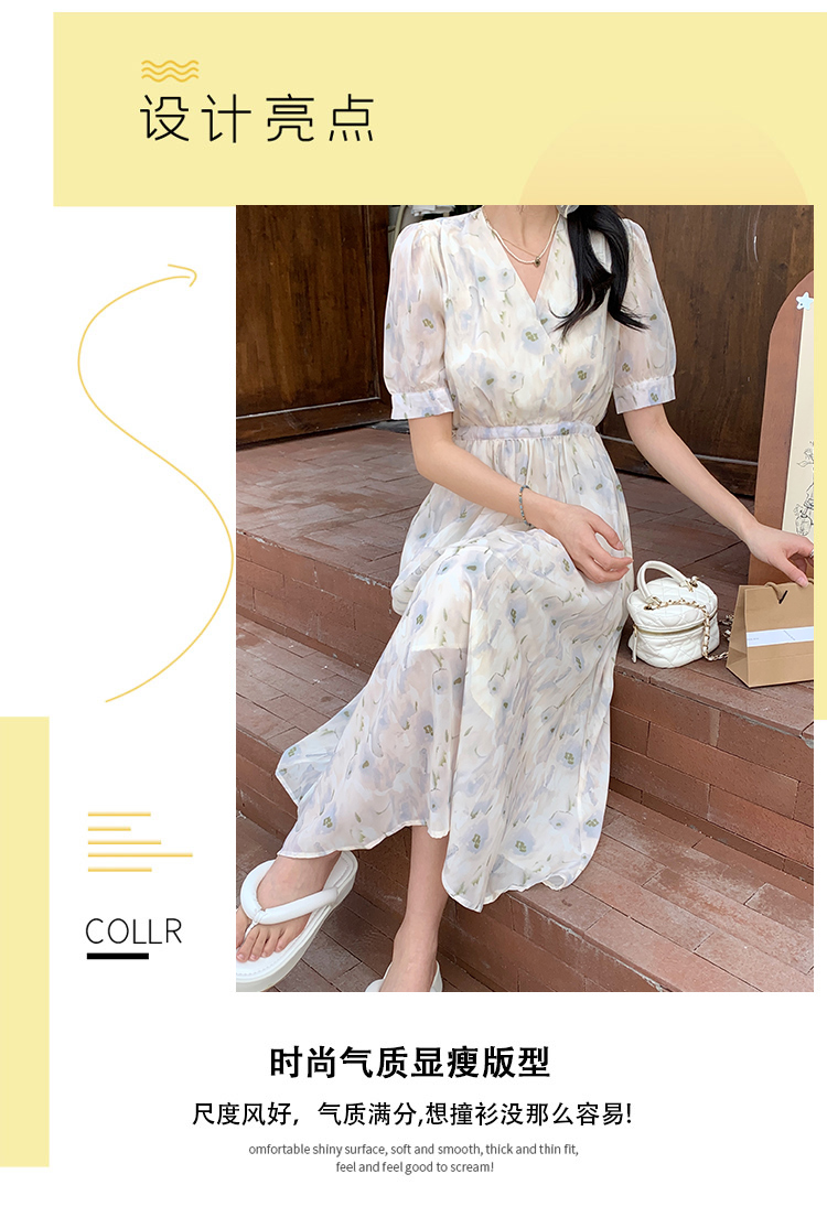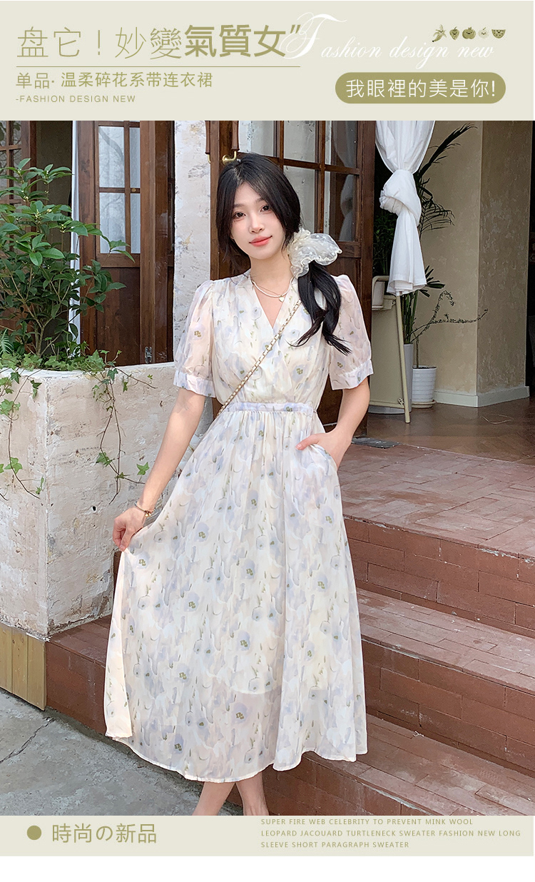 PF4527#夏季新款茶歇法式高级感显瘦v领温柔风碎花连衣裙女女裝批發 服裝批發 服裝貨源