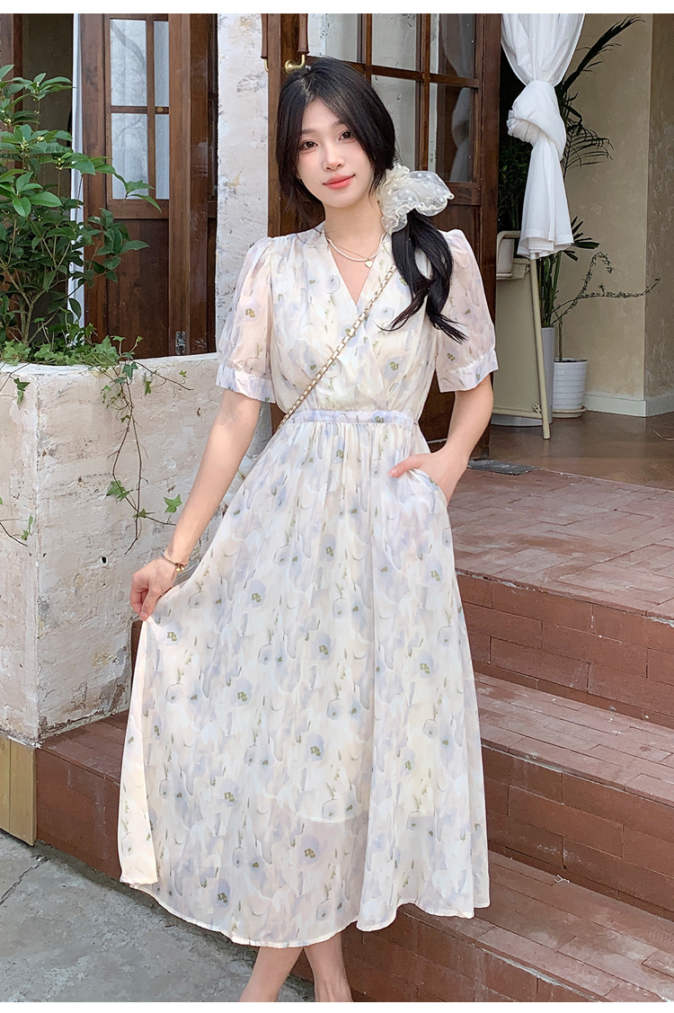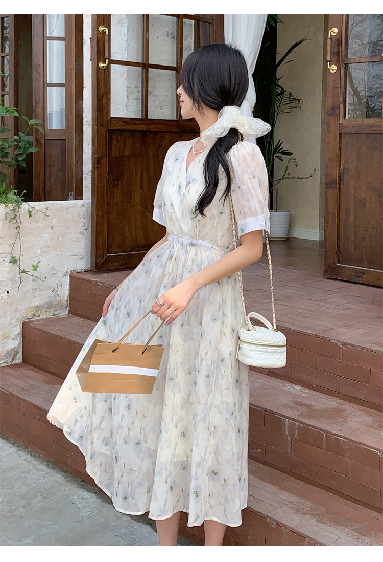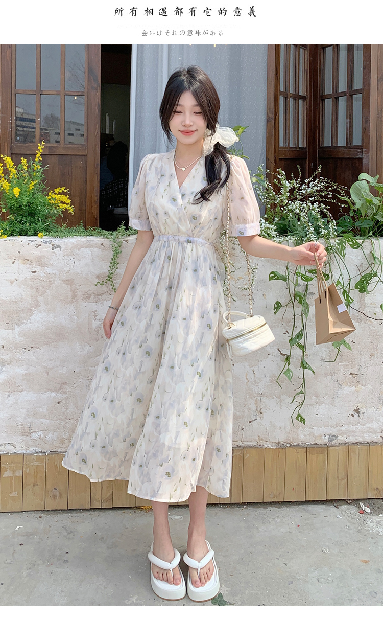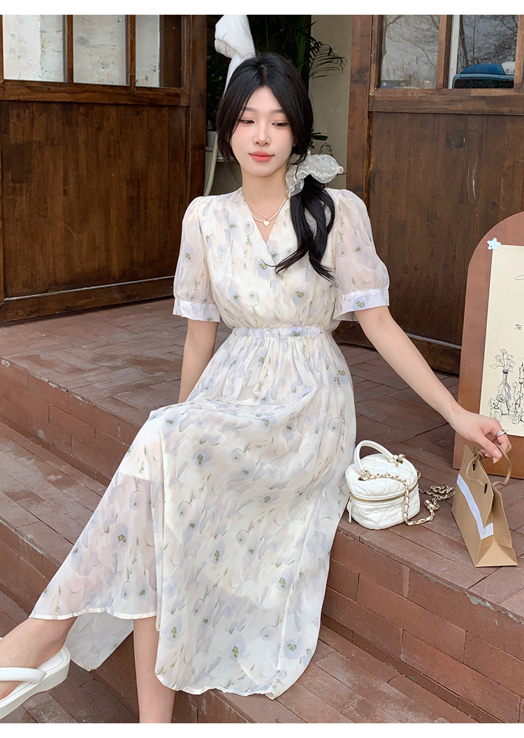PF4527#夏季新款茶歇法式高级感显瘦v领温柔风碎花连衣裙女女裝批發 服裝批發 服裝貨源