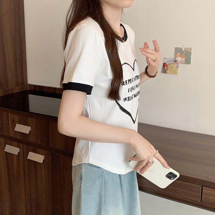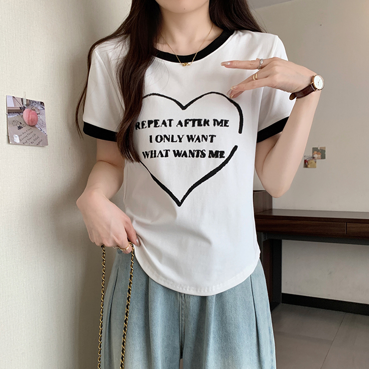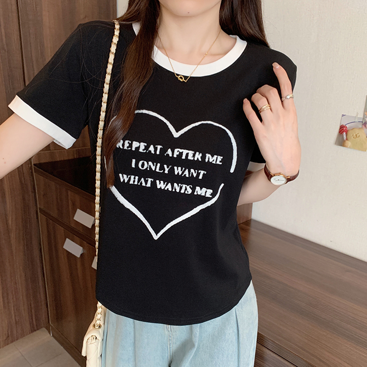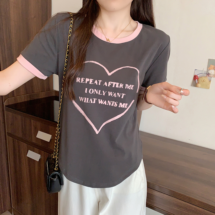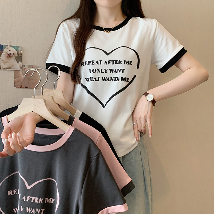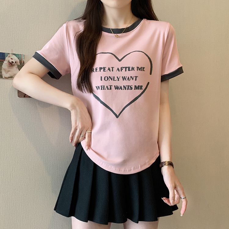PF4531#夏装新款胖mm时尚百搭显瘦遮肉撞色不规则爱心上衣T恤女裝批發 服裝批發 服裝貨源