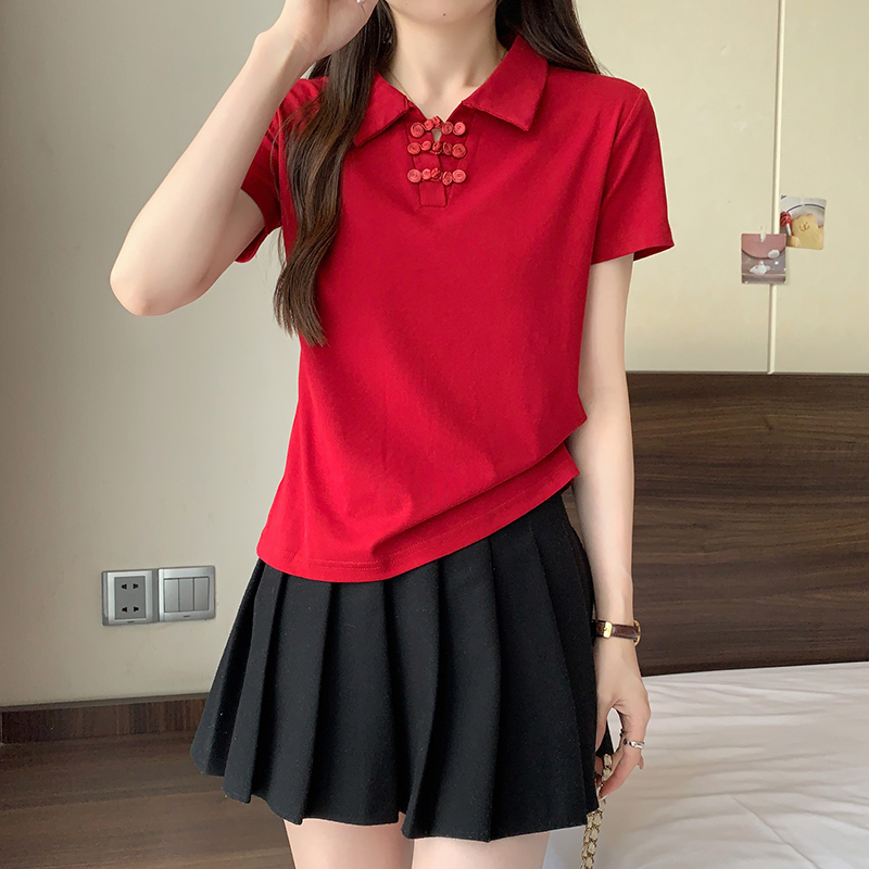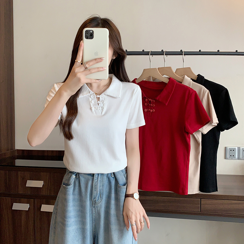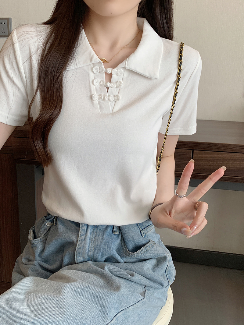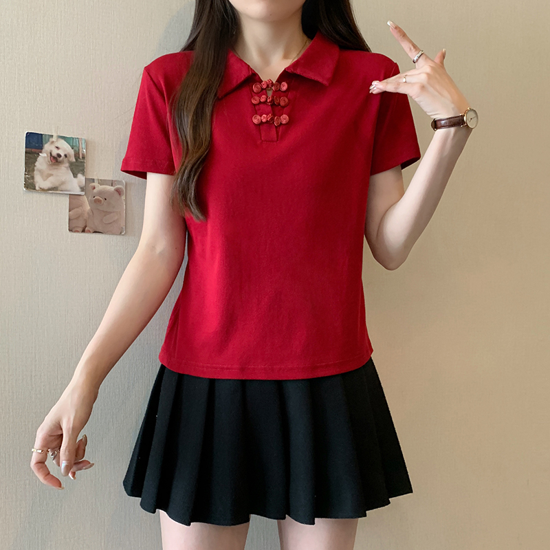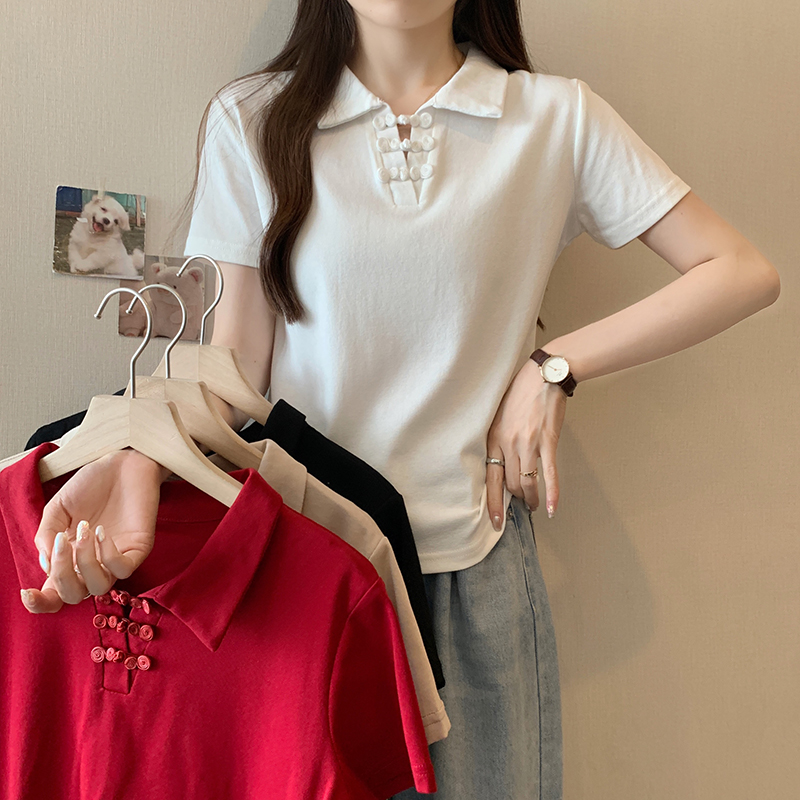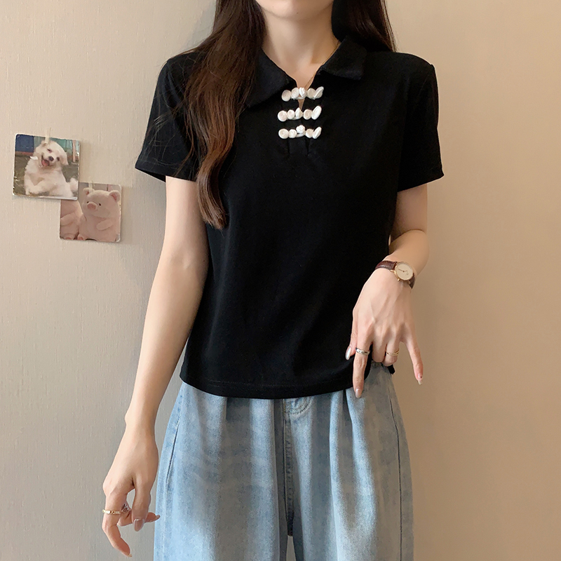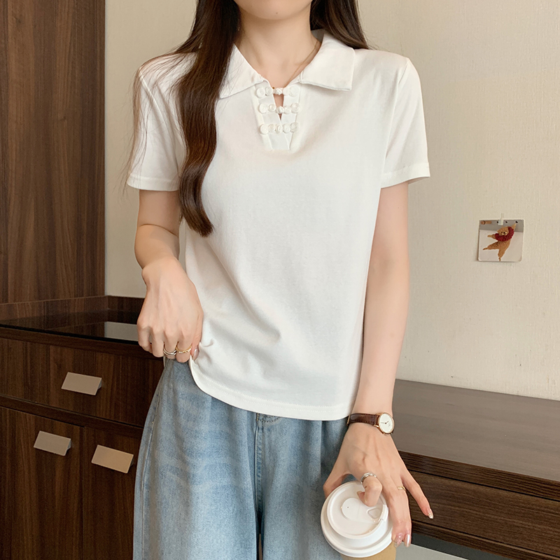 PF4539#夏装新款胖mm大码新中式国风盘扣甜辣妹短袖T恤百搭上衣女裝批發 服裝批發 服裝貨源