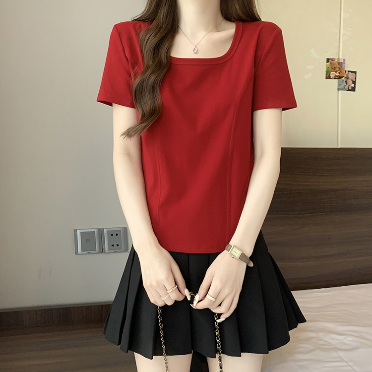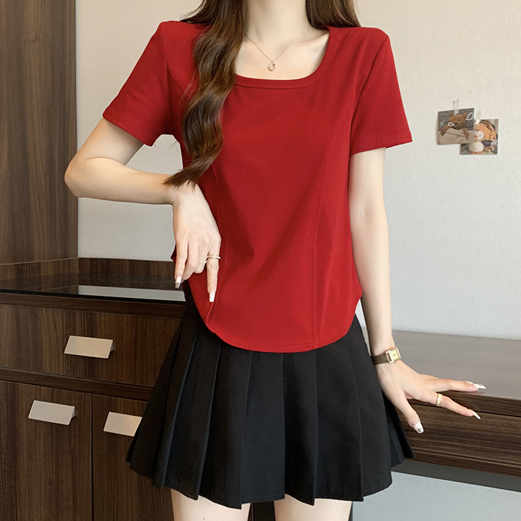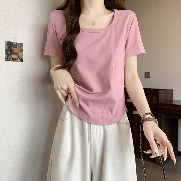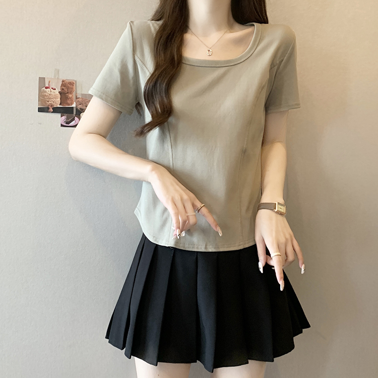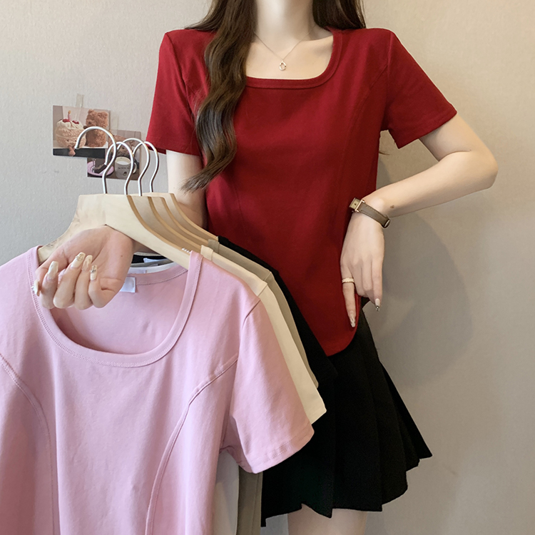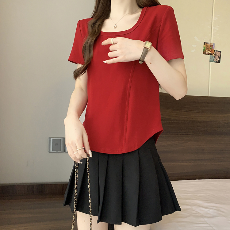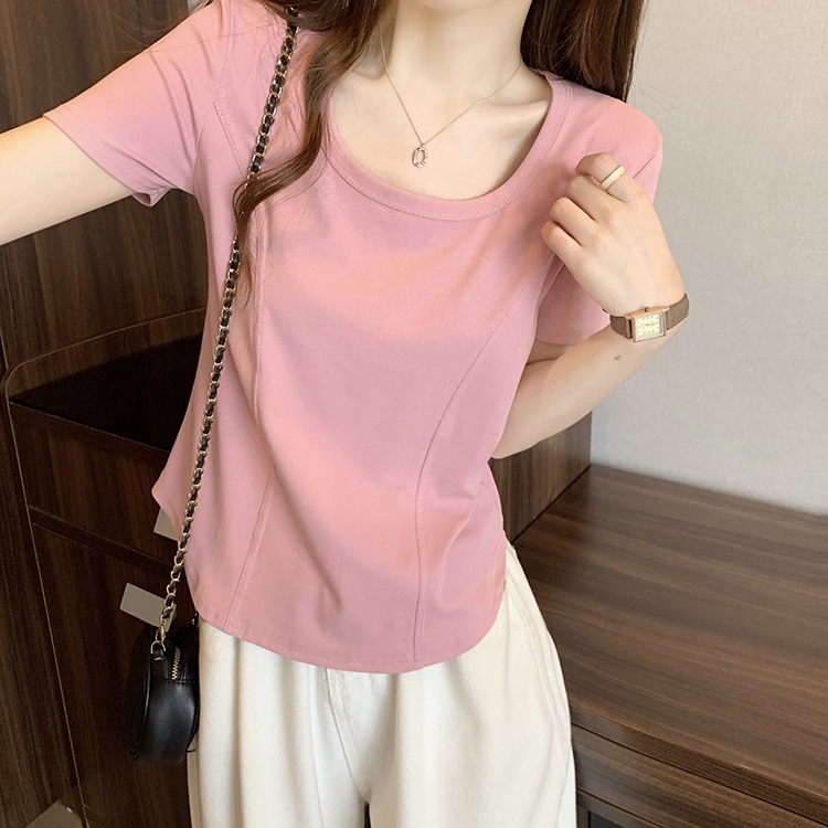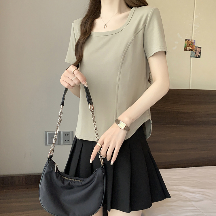 PF4544#夏装新款胖mm大码时尚百搭气质修身不规则正肩短袖T恤女裝批發 服裝批發 服裝貨源