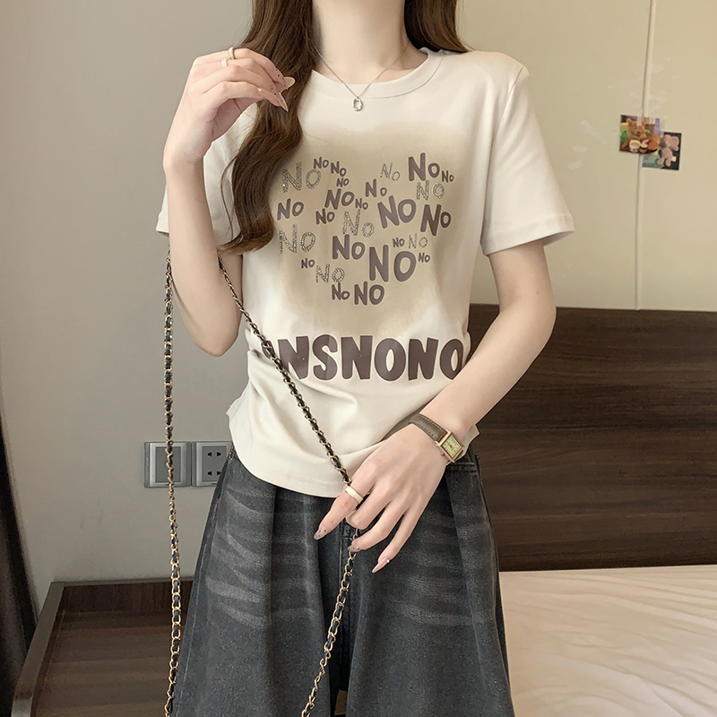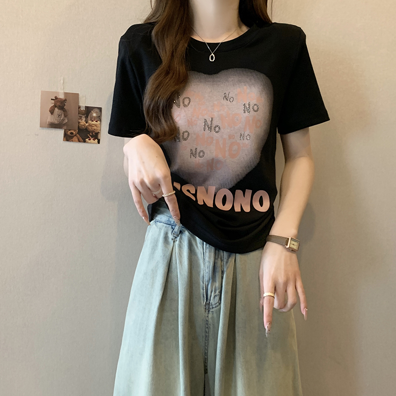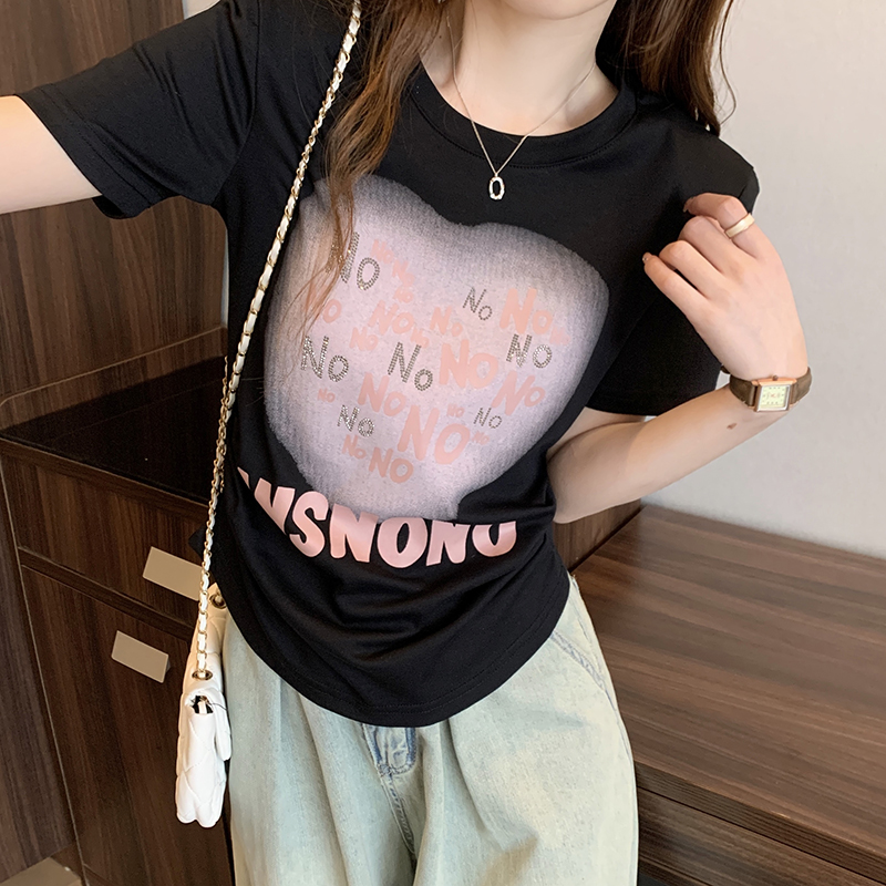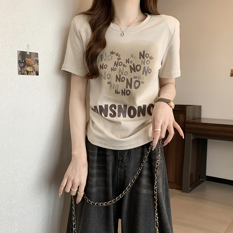 PF4546#夏装新款胖mm大码辣妹时尚休闲圆领亮片印花字母短袖T恤女裝批發 服裝批發 服裝貨源
