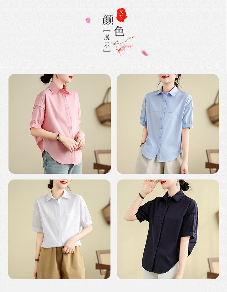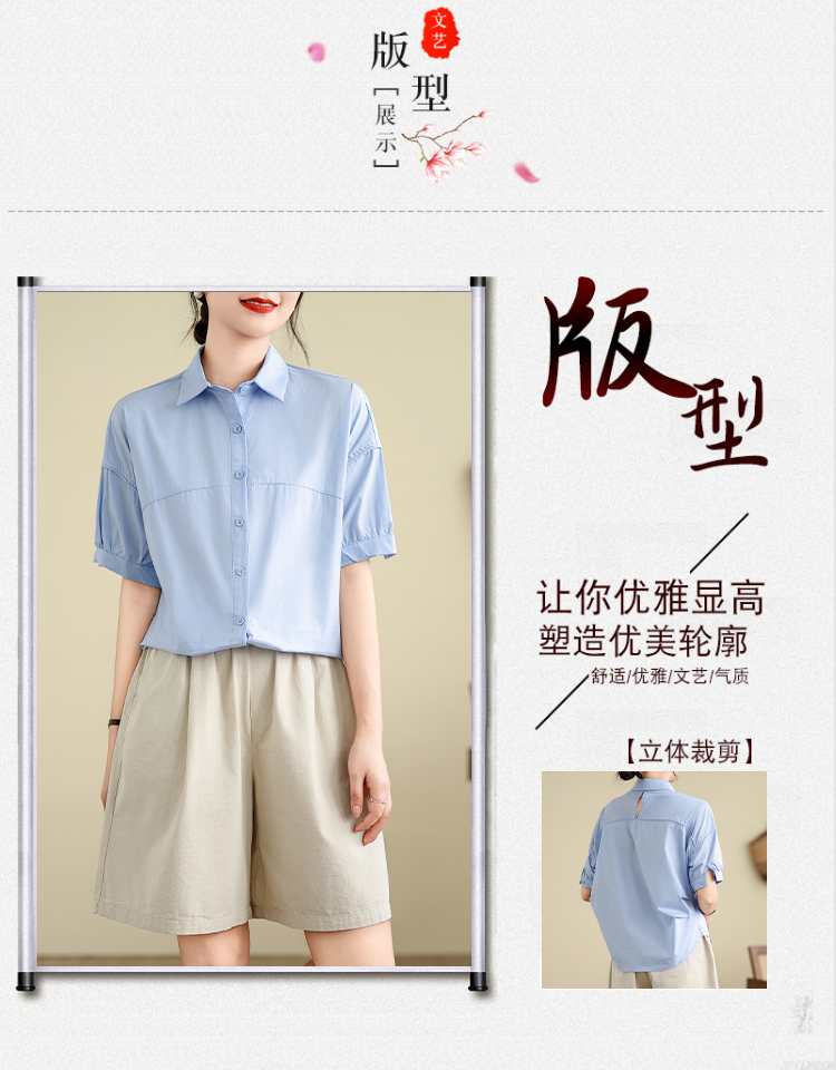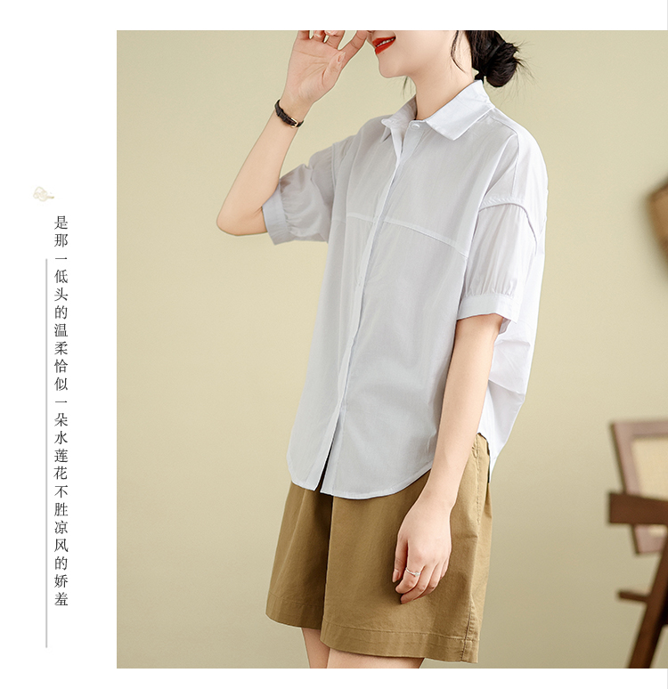 PF4553#夏装新款大码女装纯棉短袖衬衫防晒衣宽松休闲衬衣五分袖上衣女裝批發 服裝批發 服裝貨源
