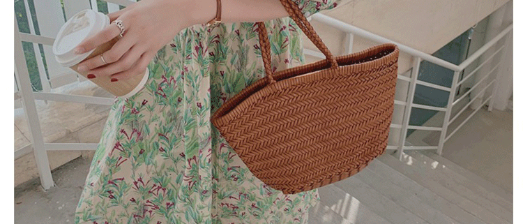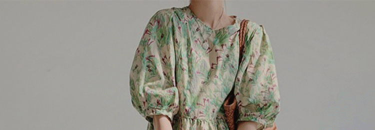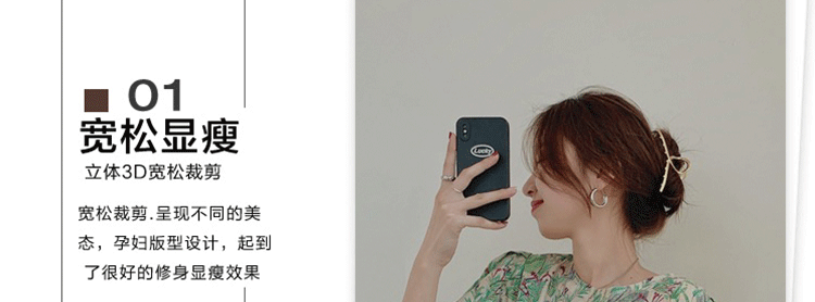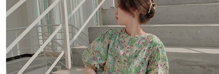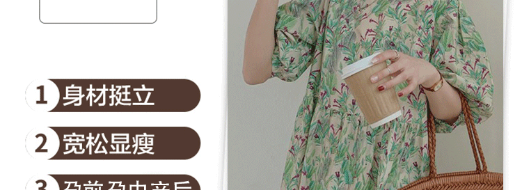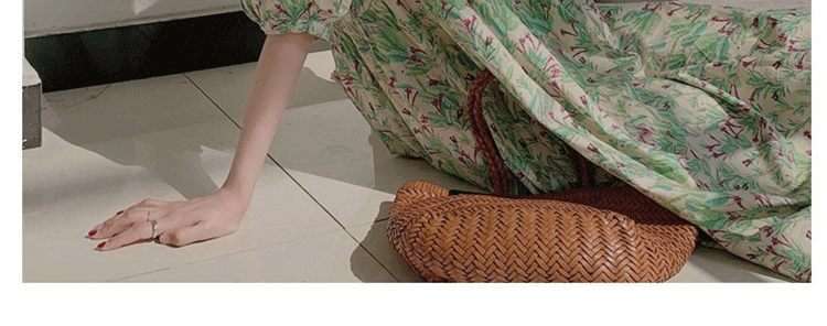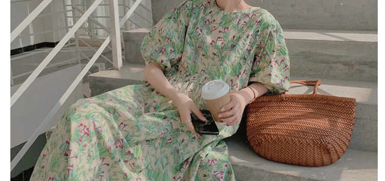 PF4555#夏装新款大码女装泡泡袖绿色碎花爆款宽松法式复古长裙M-4XL200斤女裝批發 服裝批發 服裝貨源