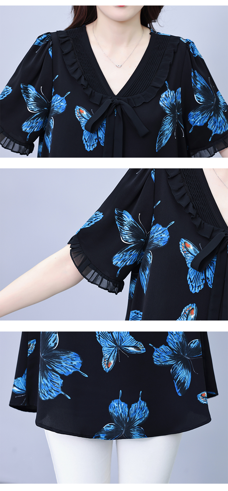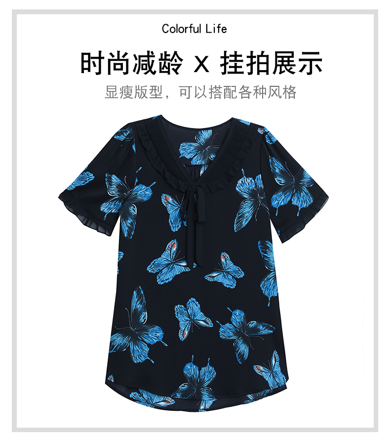 PF4571#大码女装2024夏季时尚气质宽松衬衣时尚遮肚显瘦减龄蝴蝶花上衣女女裝批發 服裝批發 服裝貨源