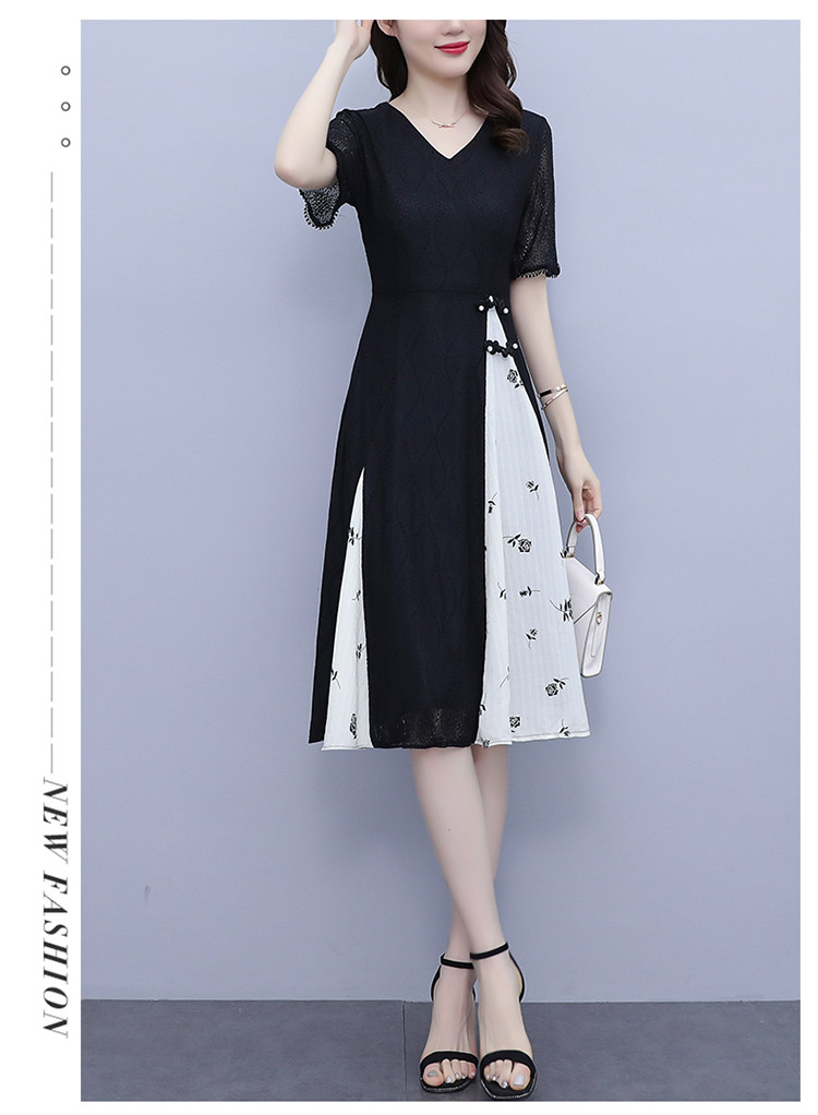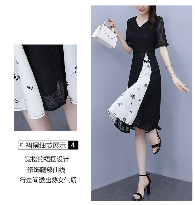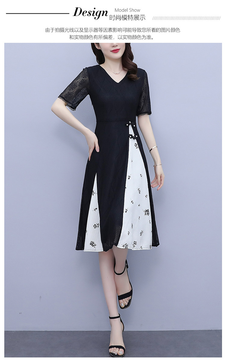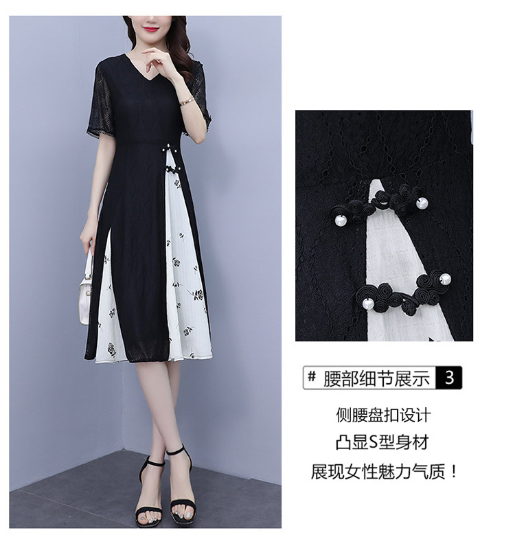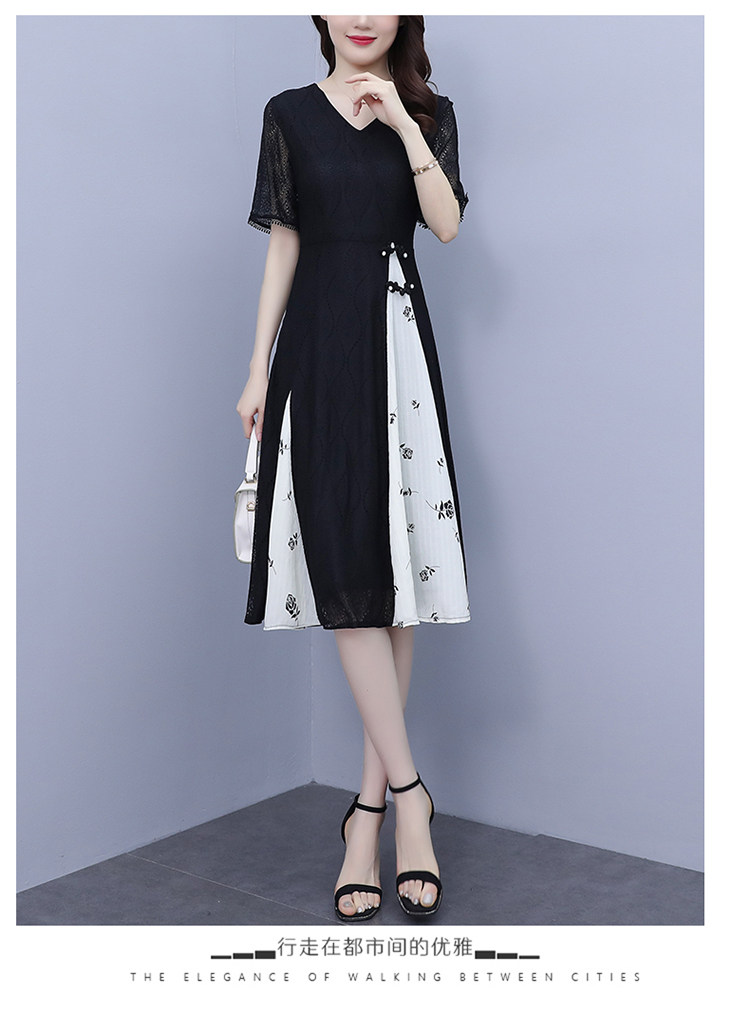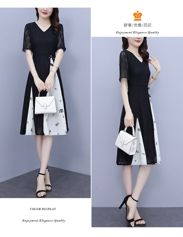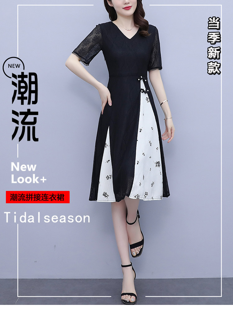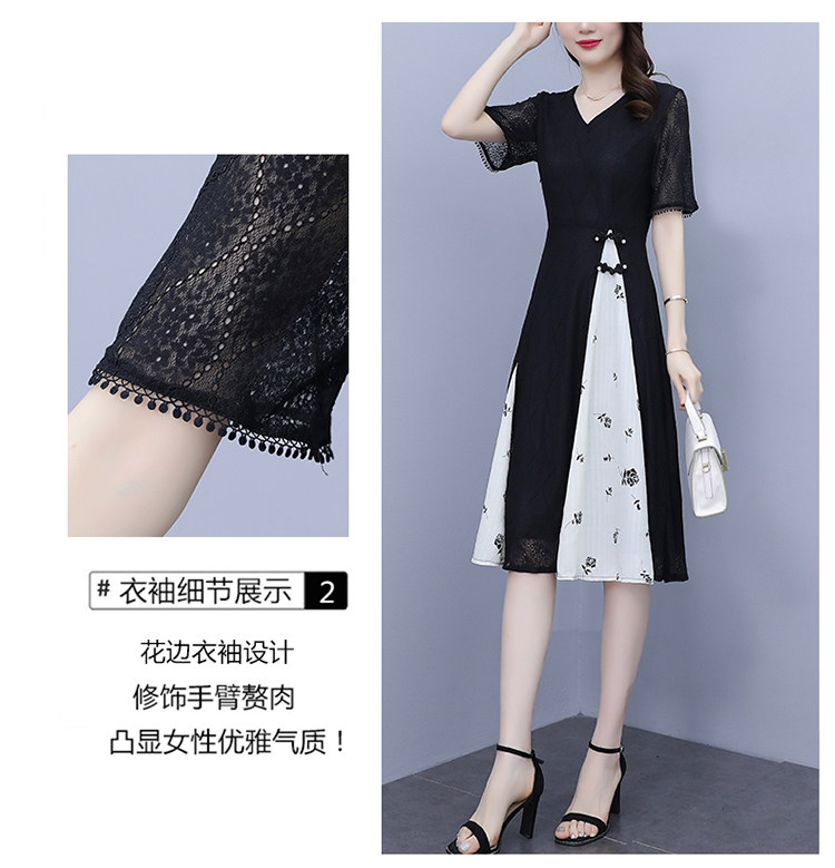 PF5835#夏装新款大码女装胖妹妹气质蕾丝拼接简约优雅连衣裙女裝貨源服裝批發