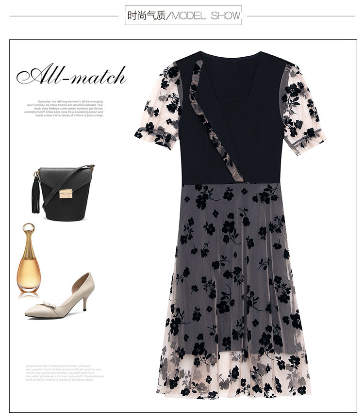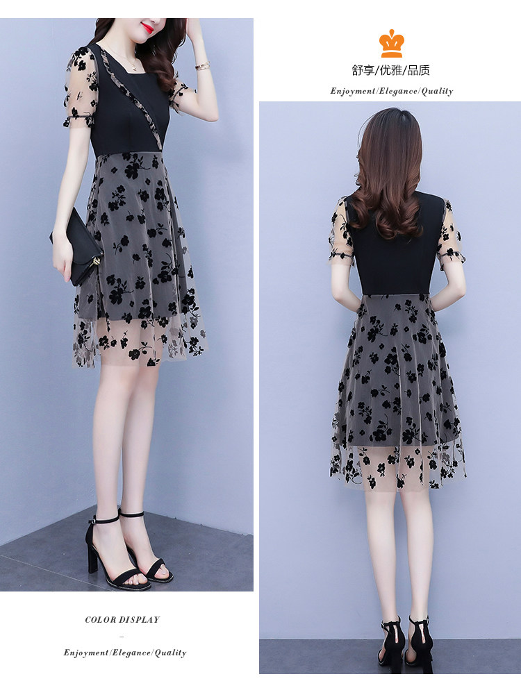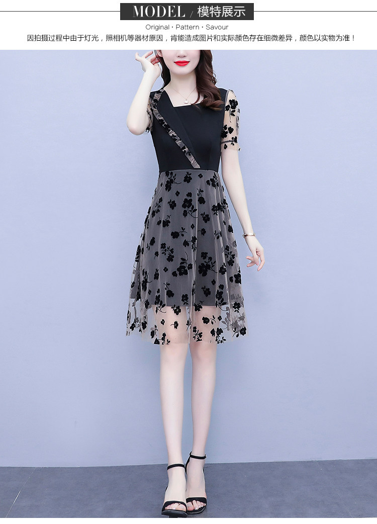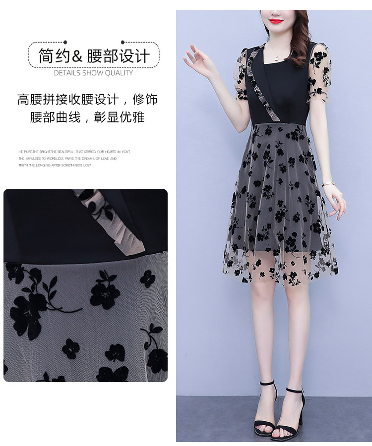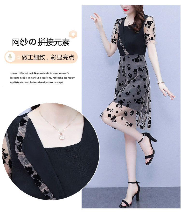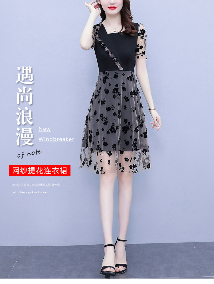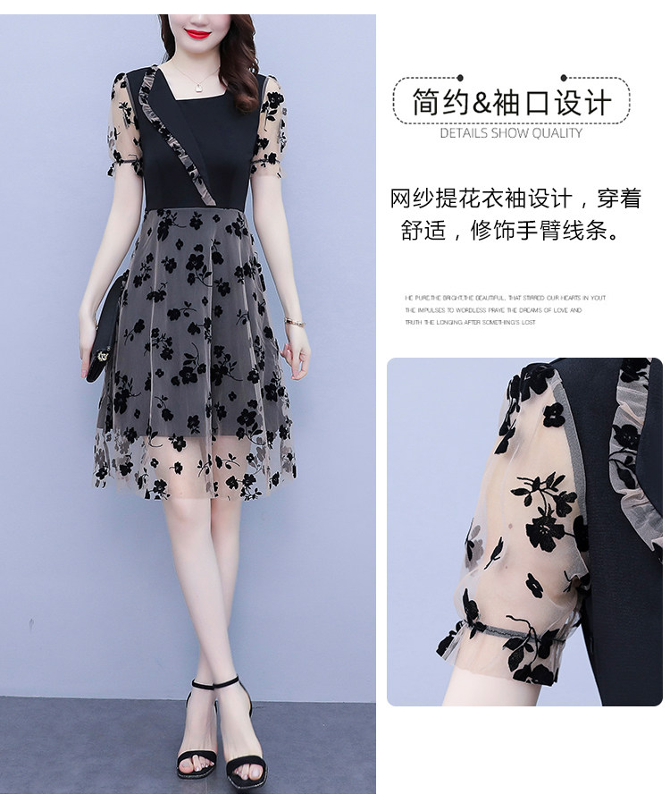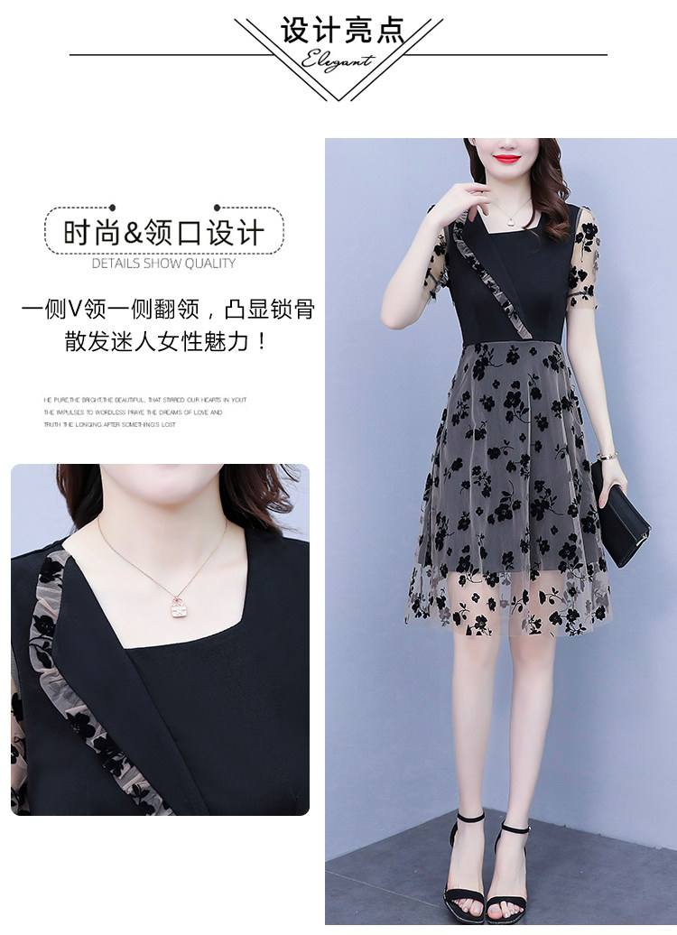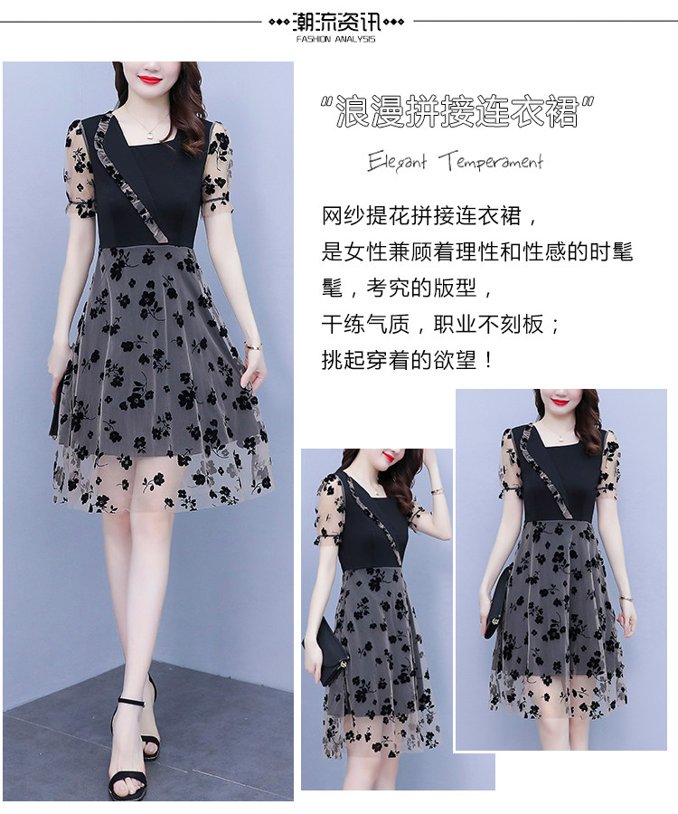 PF7155#大码女装2024年夏季新款胖mm时尚气质网纱拼接显瘦连衣裙