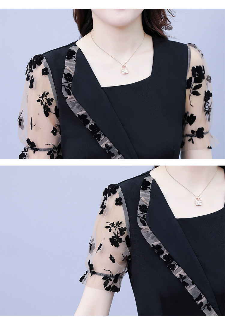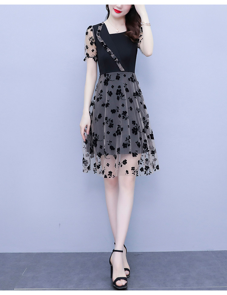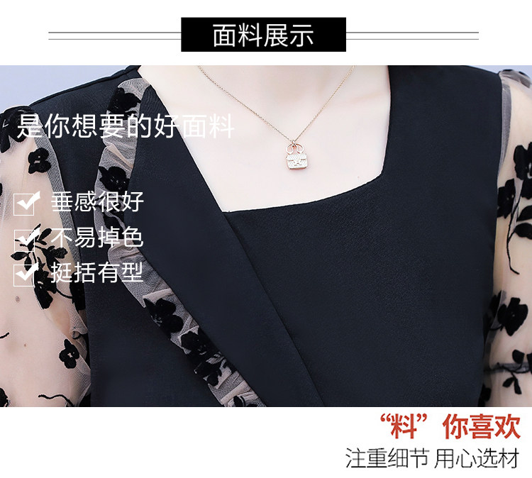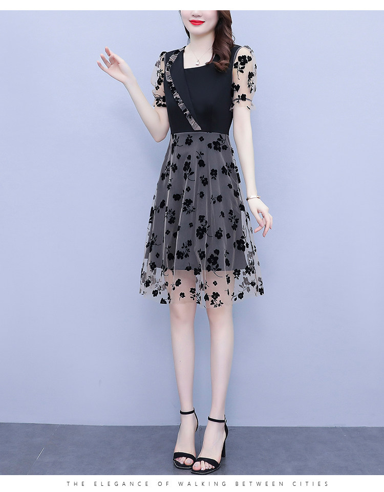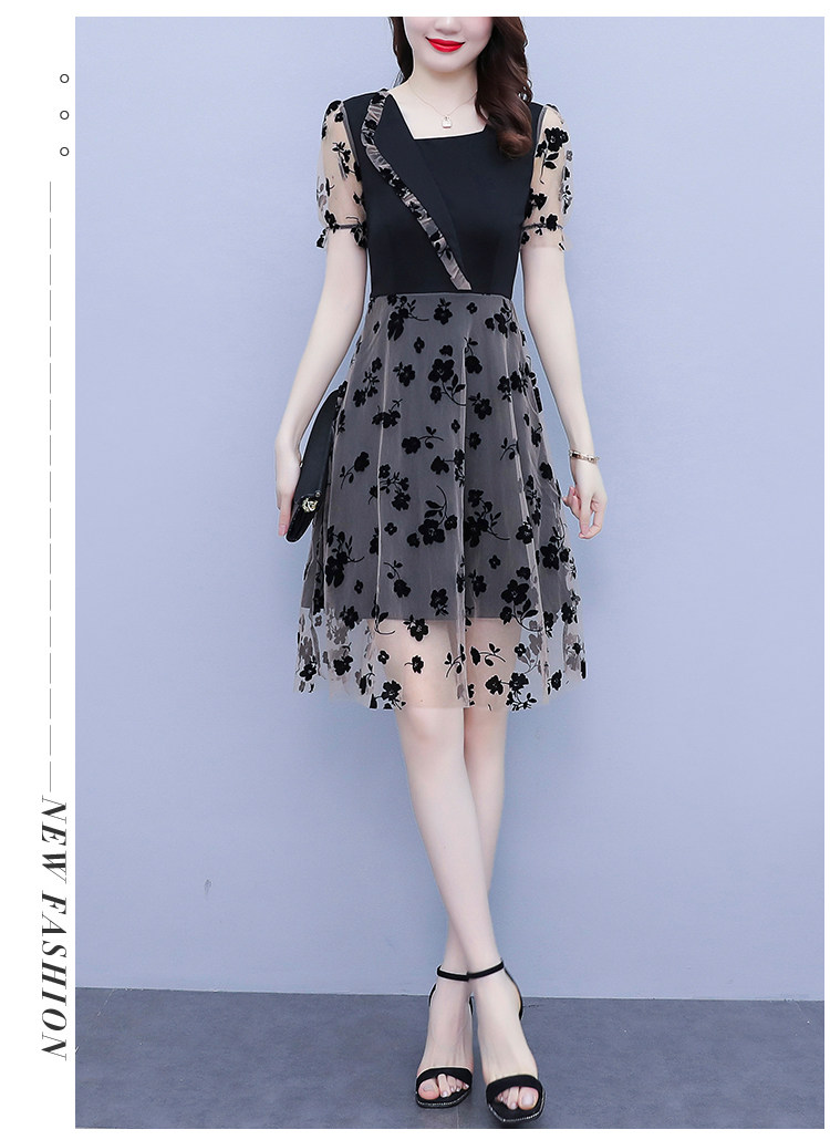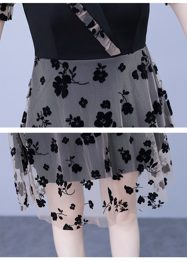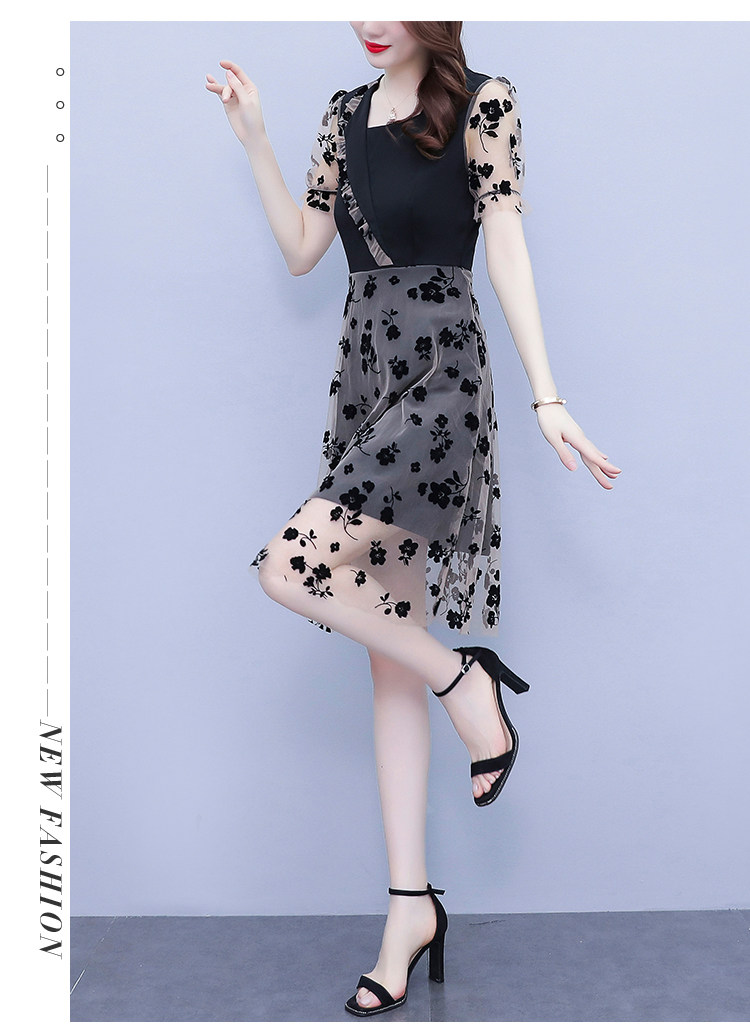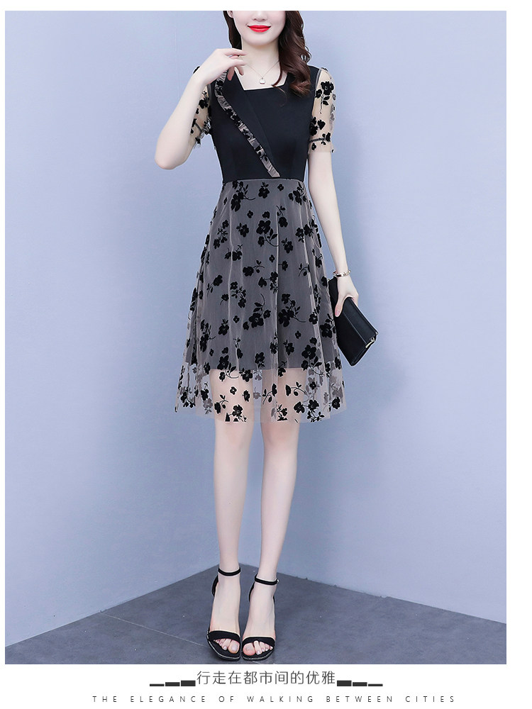 PF7155#大码女装2024年夏季新款胖mm时尚气质网纱拼接显瘦连衣裙