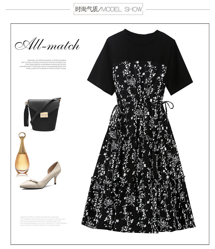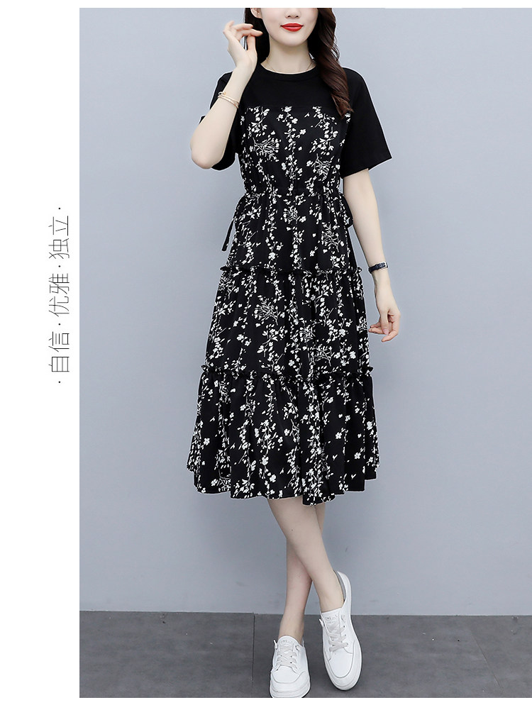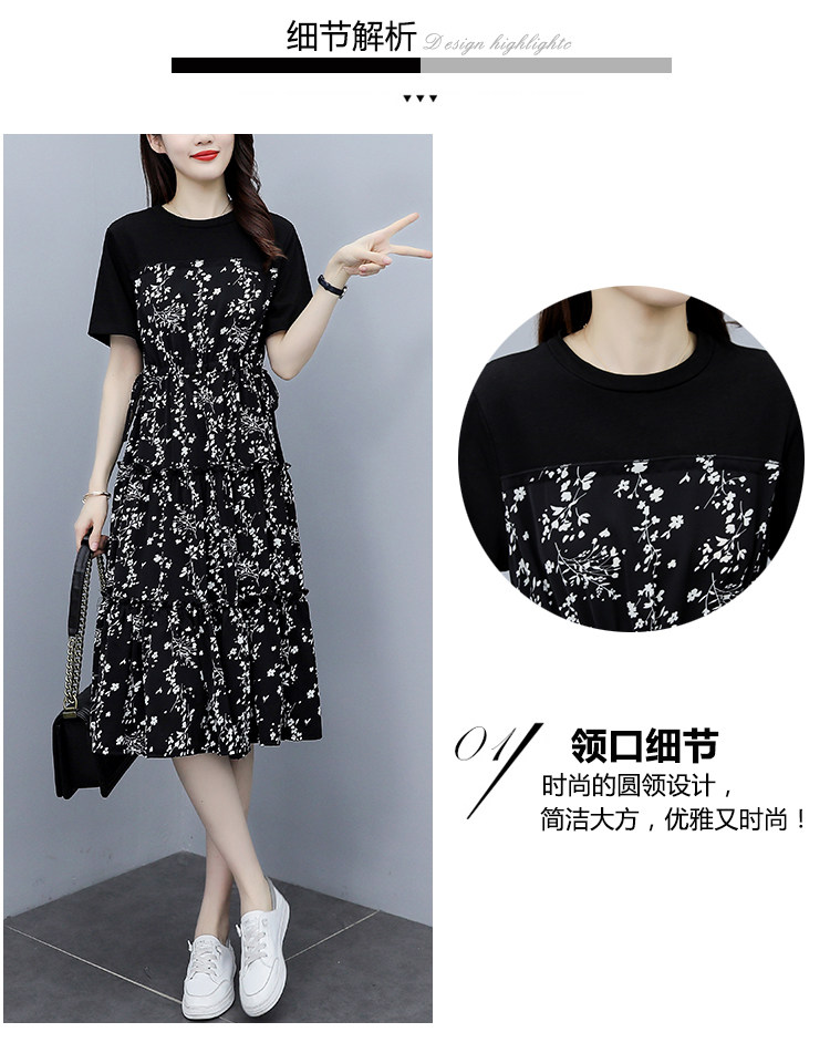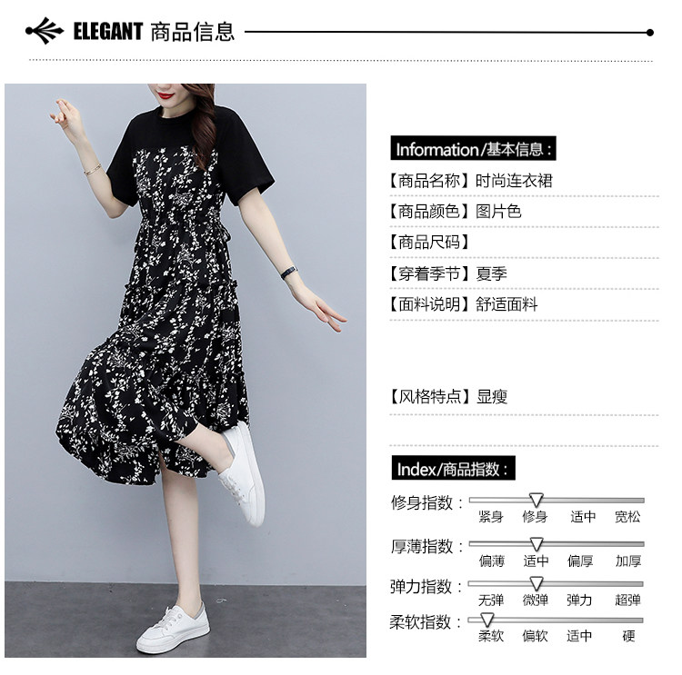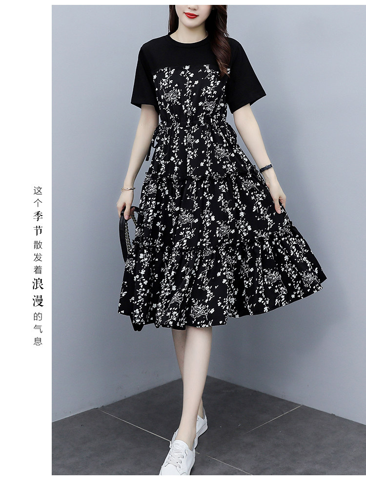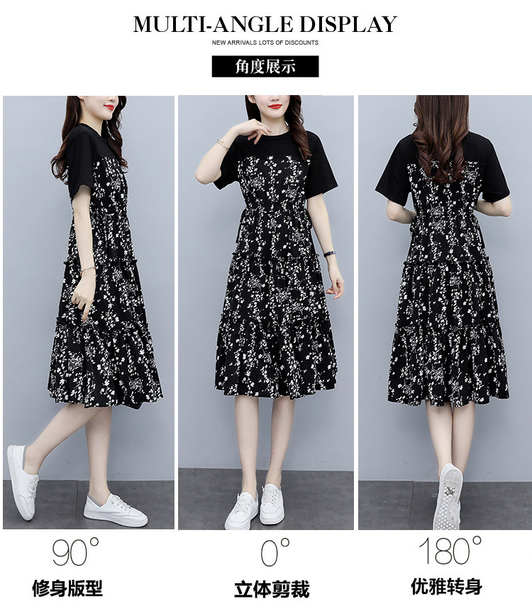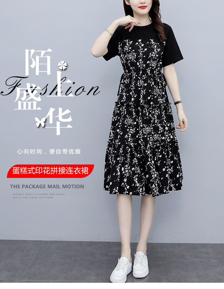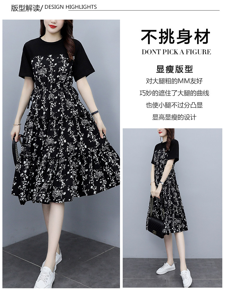 PF8784#大码女装2024夏韩版胖妹妹雪纺碎花显瘦减龄拼接连衣裙现货女裝貨源服裝批發