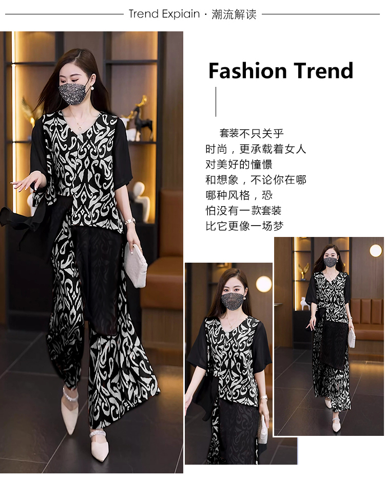PF15610#夏季新品两件套装设计感印花时尚休闲宽松显瘦百搭短袖套装女女裝貨源服裝批發