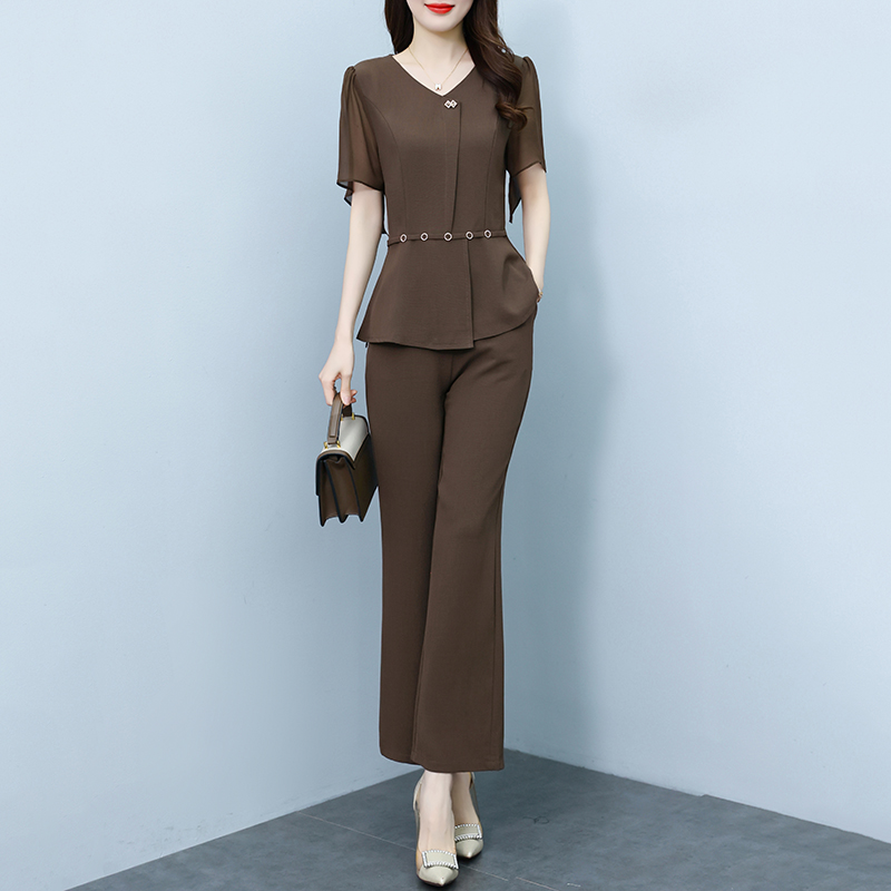 PF15660#气质套装女夏季新款2024年阔腿高档时尚收腰气质女神减龄两件套女裝貨源服裝批發