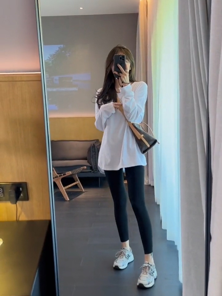 BY725#白色打底衫女内搭早春秋冬新款上衣宽松中长款纯棉小个子长袖t恤