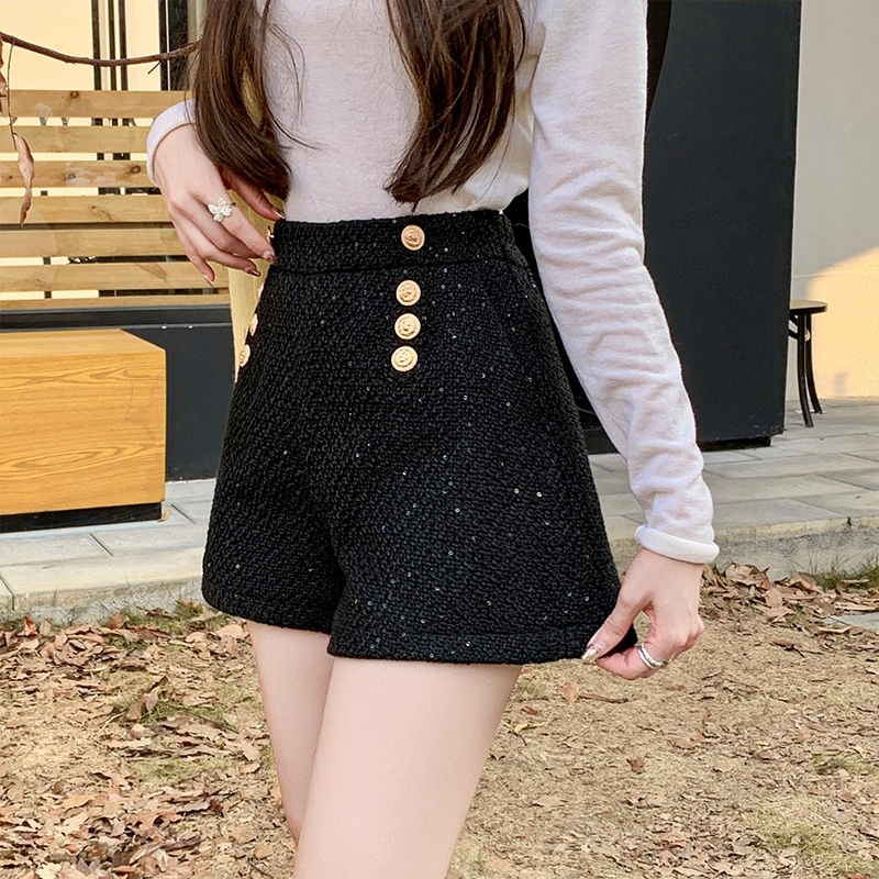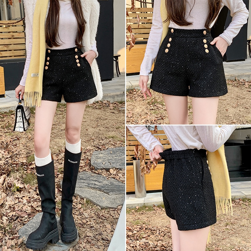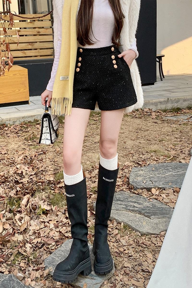 PF28198# 高级感亮片短裤秋冬小香风名媛高腰显瘦气质百搭休闲外穿靴裤女裝貨源服裝批發