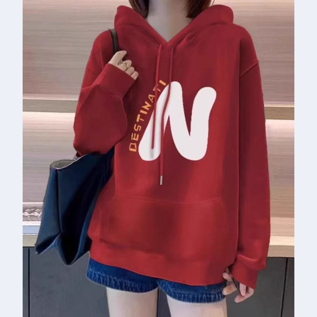 PF29726# 高品质 含棉 华棉复合 cvc罗纹 连帽印花卫衣女情侣 常规 加绒女裝貨源服裝批發