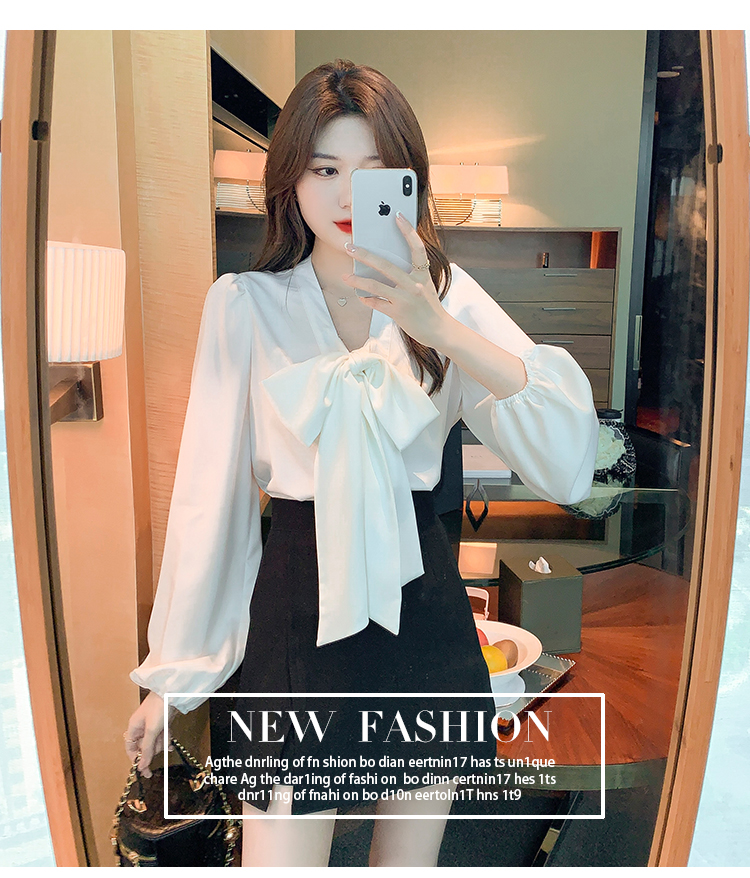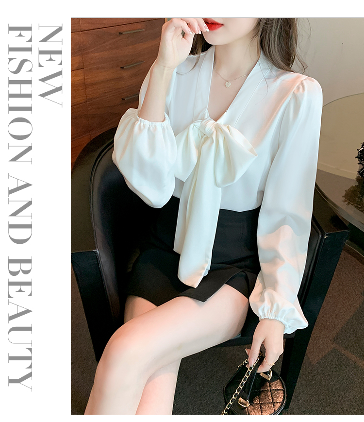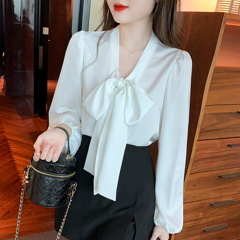 PF29782#白色蝴蝶结衬衫女小香风系带飘带打底上衣法式雪纺衬衣女裝貨源服裝批發