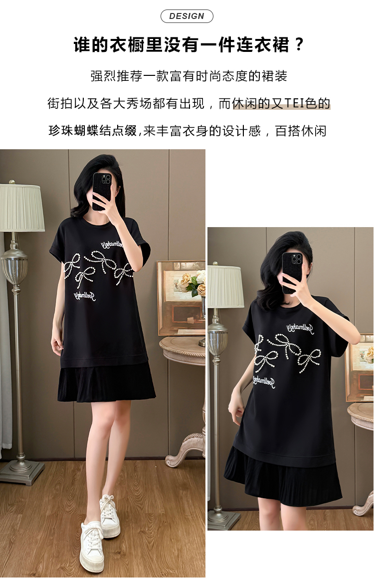MY1368# 夏季新款胖妹妹宽松时尚遮肉显瘦拼接压褶下摆卫衣连衣裙女裝貨源服裝批發