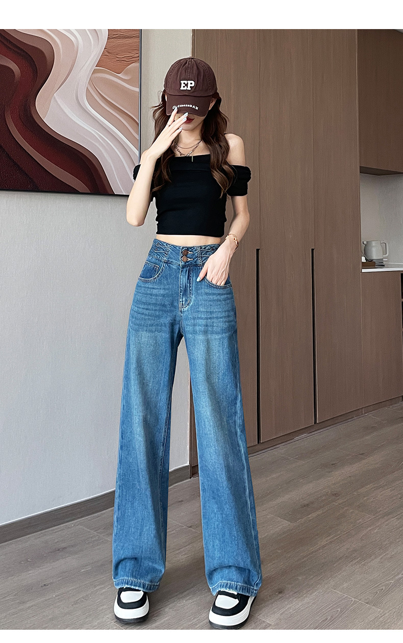 MY2459# 窄版阔腿天丝牛仔裤女夏新款高腰宽松垂感港风直筒拖地裤潮女裝貨源服裝批發