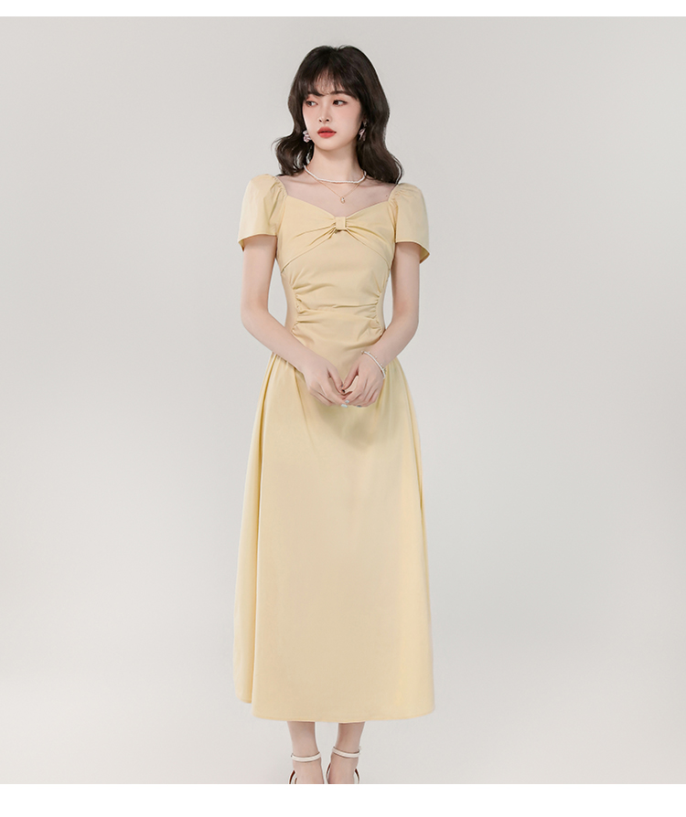 MY3872#夏季新款韩版甜美减龄V领蝴蝶结弹力收腰显瘦长款连衣裙女裝貨源服裝批發