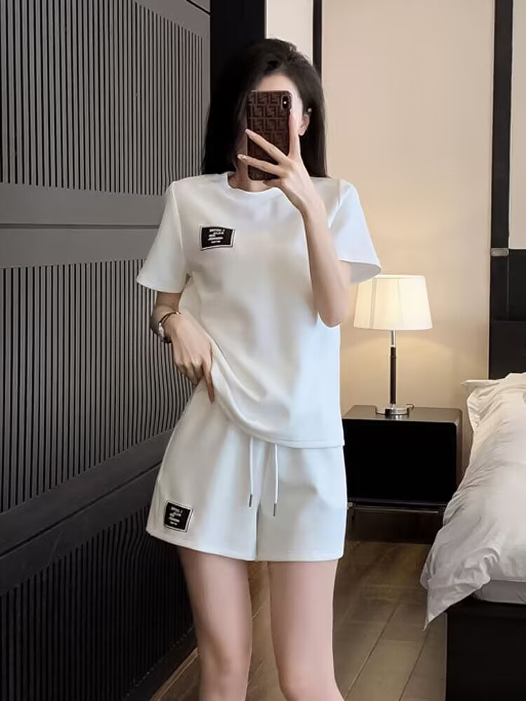 MY4463# 小个子穿搭一整套时尚休闲运动网红炸街白色短袖短裤两件套装女夏女裝貨源服裝批發