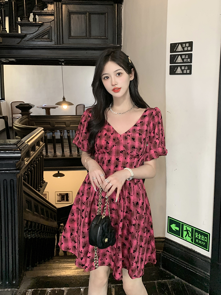 MY4999# 大码女装胖MM夏季新款方领收腰显瘦连衣裙多巴胺时尚短裙女女裝貨源服裝批發