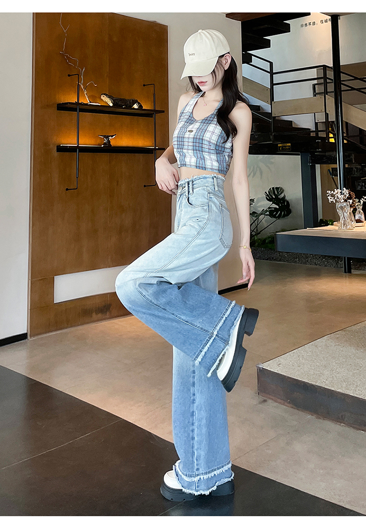 MY5123# 梨形身材渐变牛仔裤女春季新款宽松拼色高腰显瘦直筒阔腿长裤女裝貨源服裝批發