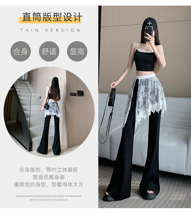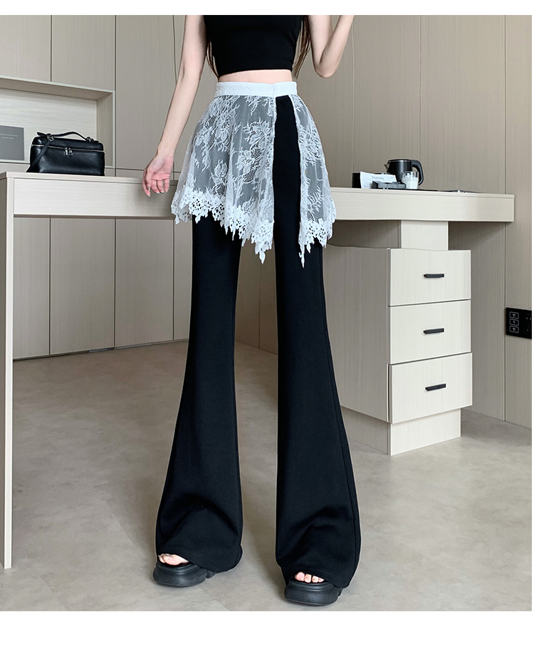 MY5148# 慵懒蕾丝屁帘微喇裤新款高腰显瘦时尚两件套休闲拖地裤女裝貨源服裝批發