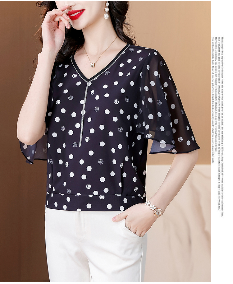 MY5242# 夏季新款亲肤V领飞飞袖波点印花上衣女女裝貨源服裝批發