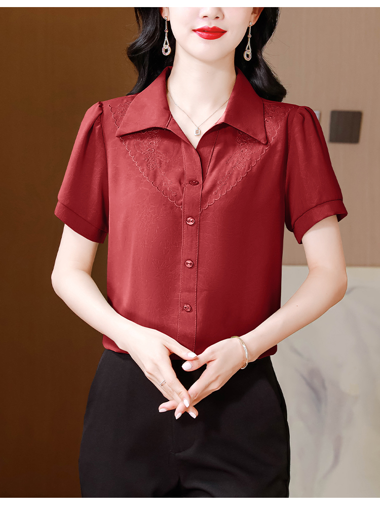 MY5243# 短袖真丝衬衫女刺绣中国风民族风大码减龄洋气百搭小衫女裝貨源服裝批發