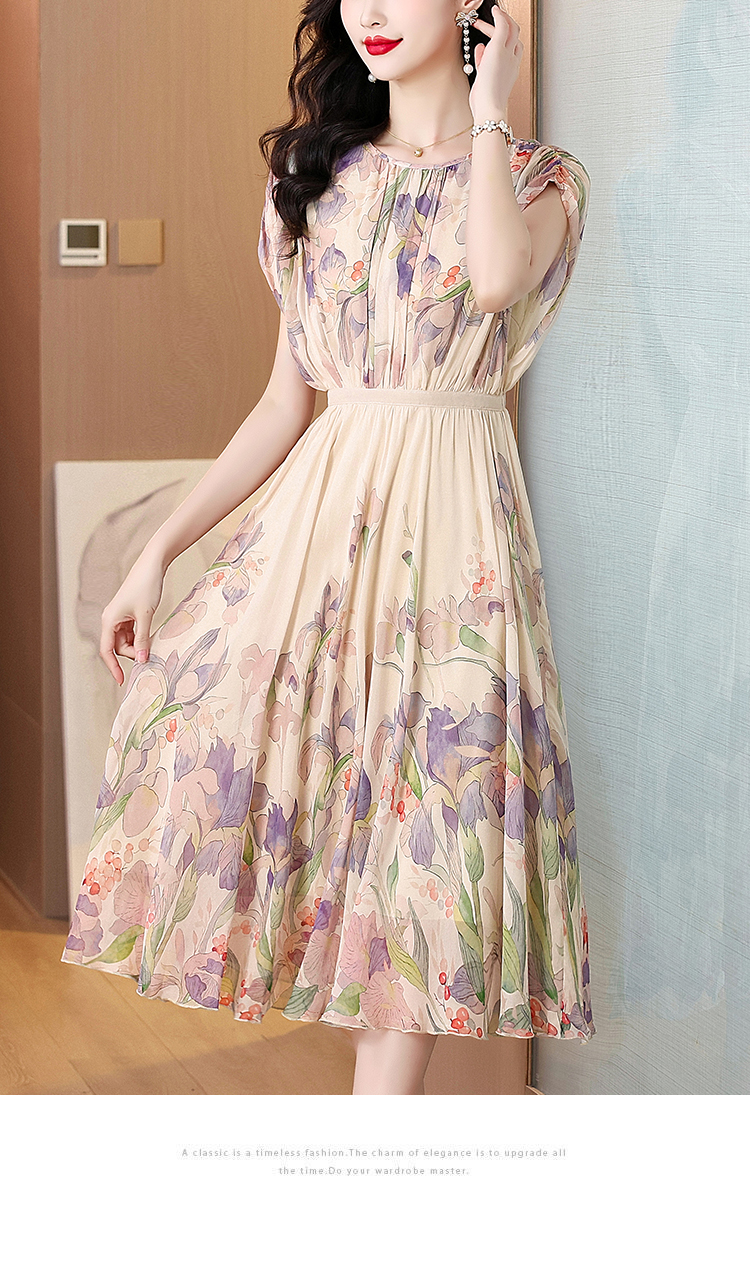 MY5322# 高个子连衣裙女夏新款圆领无袖气质桑蚕丝印花长裙女裝貨源服裝批發