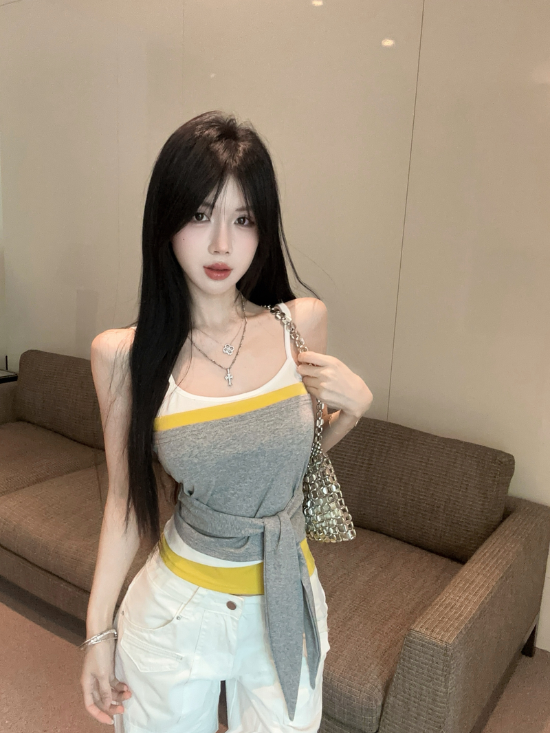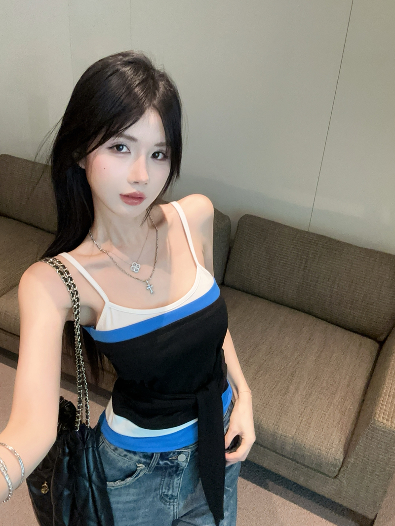 MY5382# 韩版设计感时尚假两件撞色小众绑带背心吊带上衣女女裝貨源服裝批發