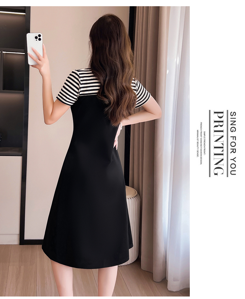 MY5425# 新款休闲连衣裙女夏季假两件时尚拼接气质显瘦长款t恤裙子女裝貨源服裝批發
