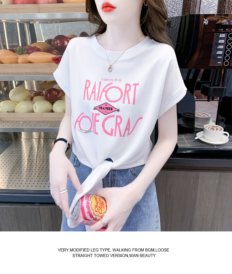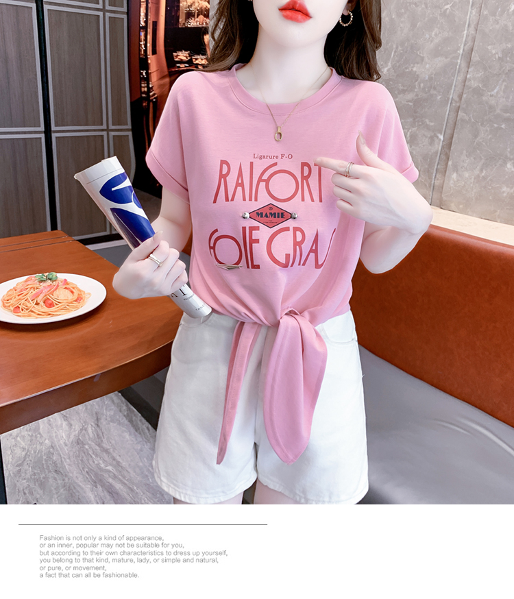 MY5465# 别致宽松字母印花系带蝴蝶结短袖T恤女设计感上衣女裝貨源服裝批發