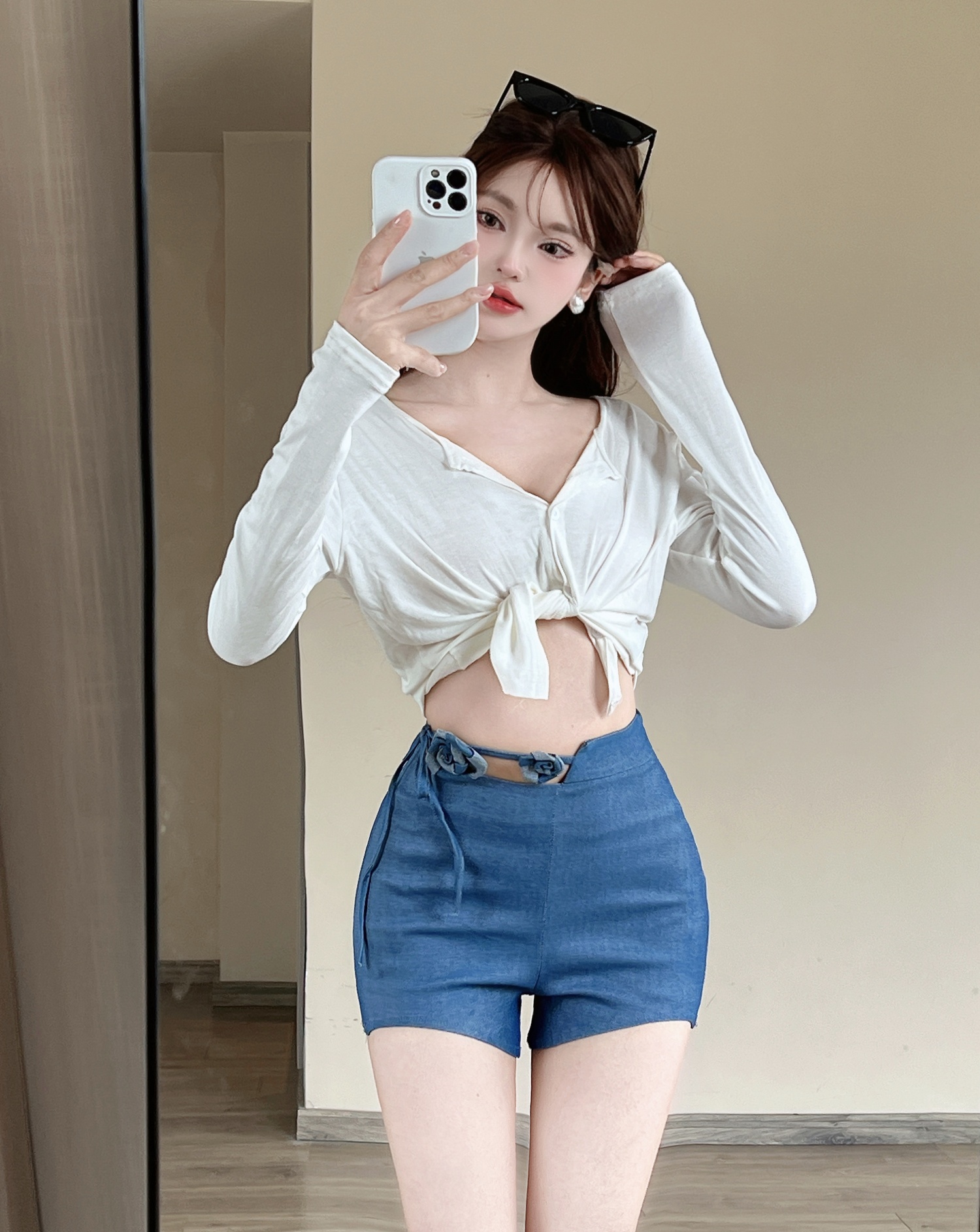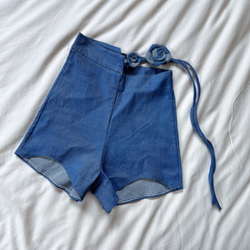 MY5505# 弹力牛仔蓝立体花朵跳舞DJ热辣短裤辣妹女女裝貨源服裝批發