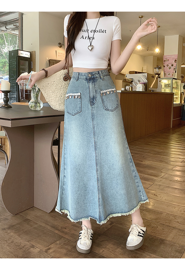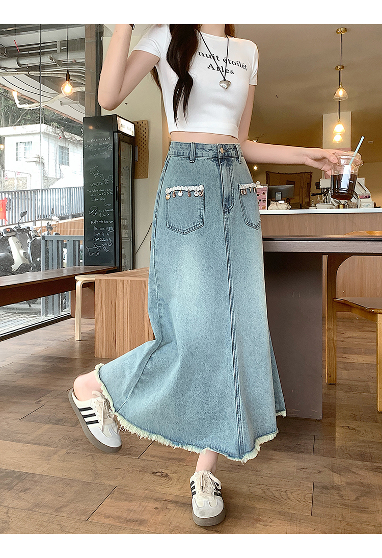MY5527# 夏装新款胖mm大码女时尚复古设计感贝壳高腰牛仔裙鱼尾裙女裝貨源服裝批發