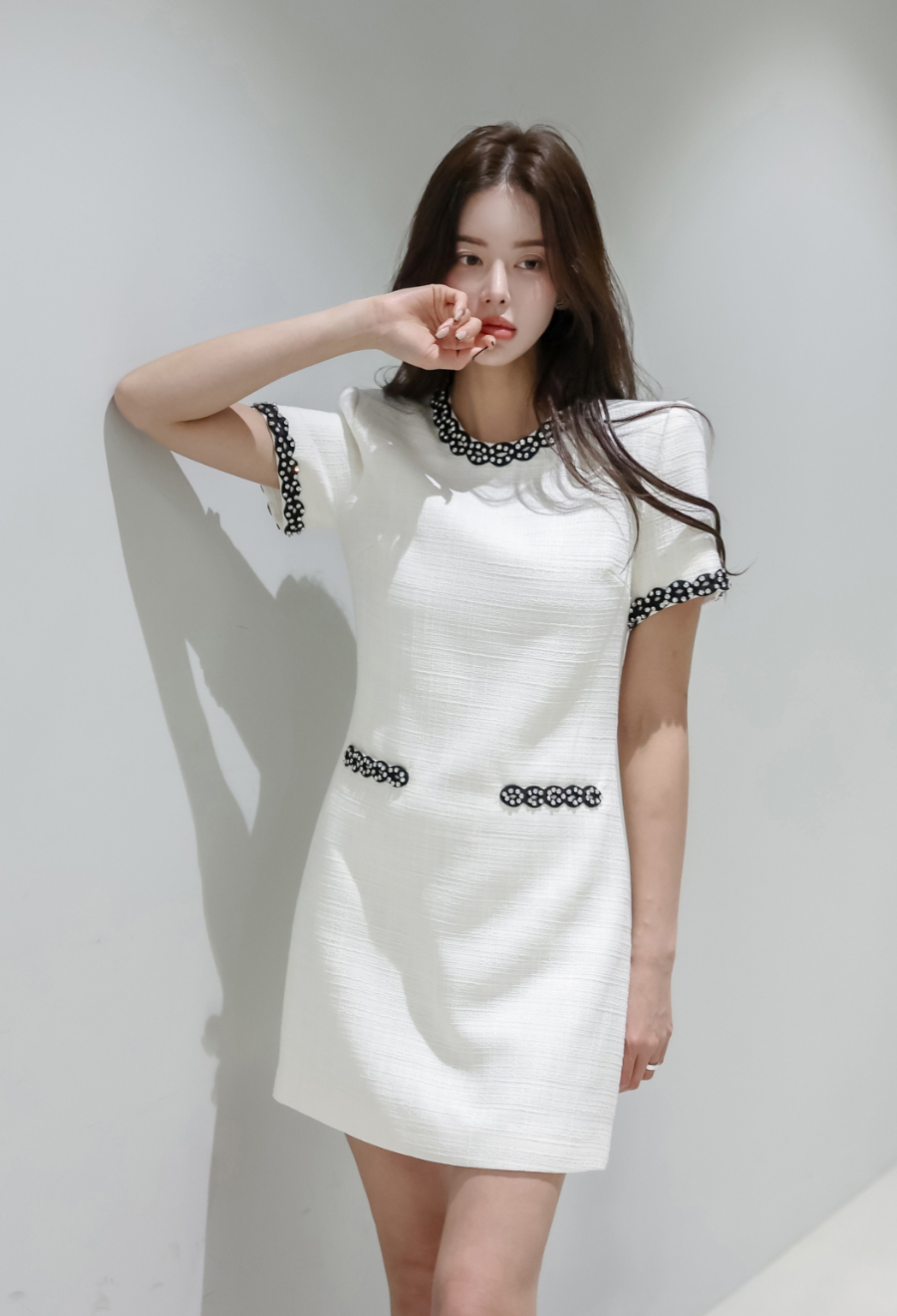 MY5543# 时尚淑女韩国Chic小香风连衣裙 钉钻粗花呢短袖短裙韩版连衣裙女裝貨源服裝批發