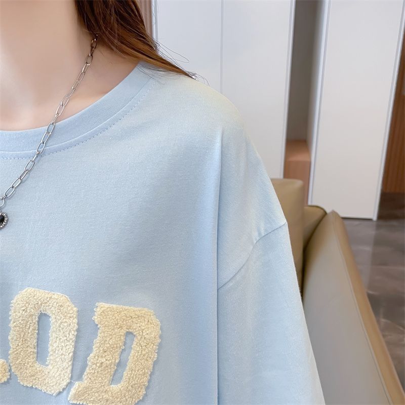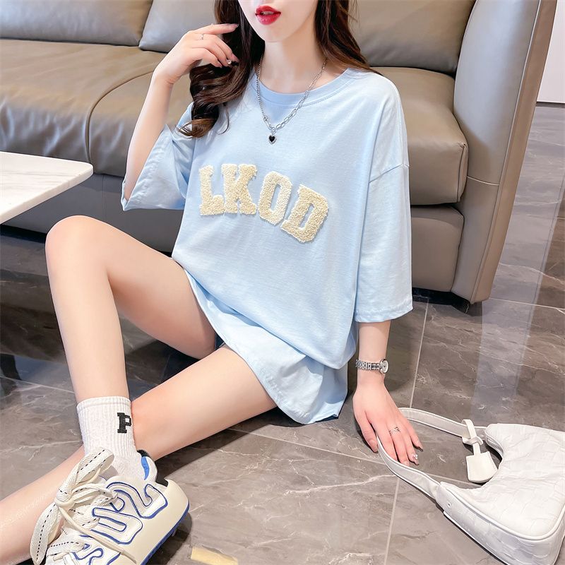 MY5552# 纯棉21支 字母刺绣短袖T恤女夏季新款中长款女裝貨源服裝批發