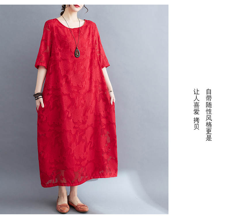 MY5611# 夏季新款牡丹花剪花遮肚显瘦禅意连衣裙女大码女裝貨源服裝批發