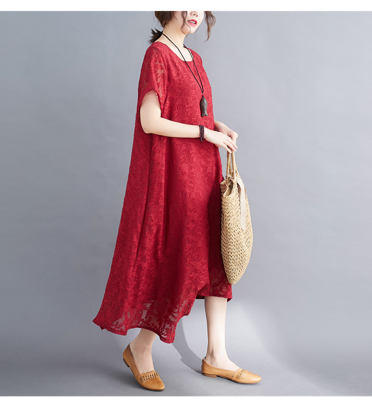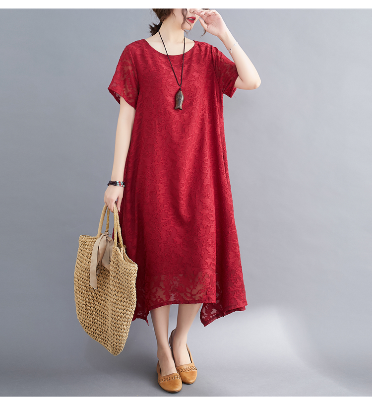 MY5612# 新款韩版宽松遮肚显瘦不规则圆领短袖连衣裙女女裝貨源服裝批發