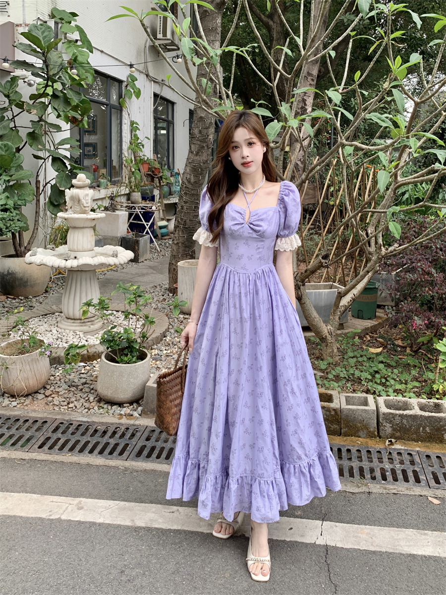 MY5627# 夏季超好看独特漂亮裙子法式气质绝美高级感紫色碎花连衣裙女女裝貨源服裝批發