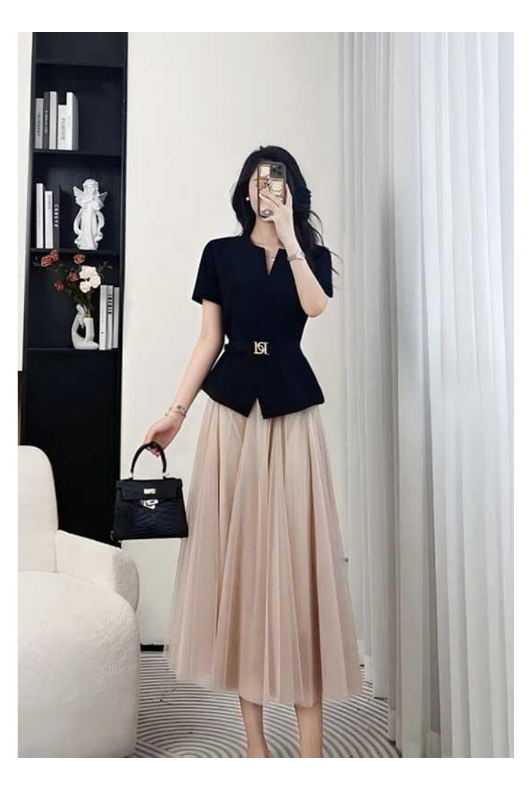 MY5858# 有里布两件套夏季新时尚轻奢显瘦百搭上衣半身裙两件套女裝貨源服裝批發