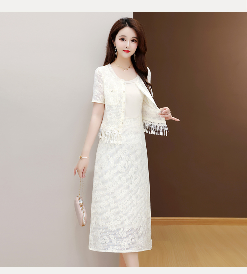 MY5895# 夏季新款大码短袖蕾丝连衣裙遮肚显瘦洋气小香风女裝貨源服裝批發