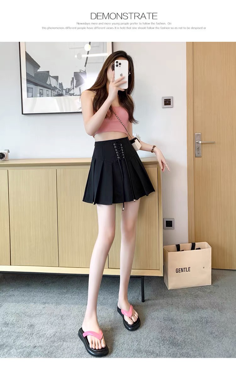 MY6201# 新款小众设计复古百褶裙春夏显瘦高腰绑带气质短裙子a字半身裙女女裝貨源服裝批發