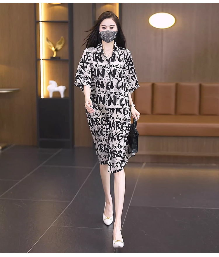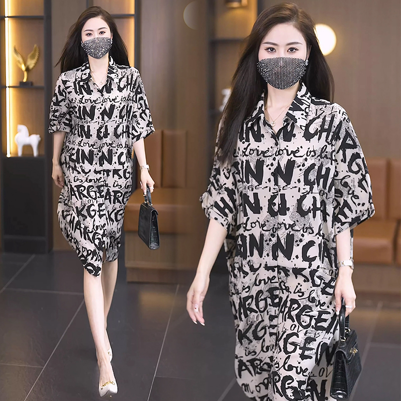 MY6341# 夏季新款韩版胖MM大码POLO领遮肉单排扣衬衫连衣裙中长款女裝貨源服裝批發