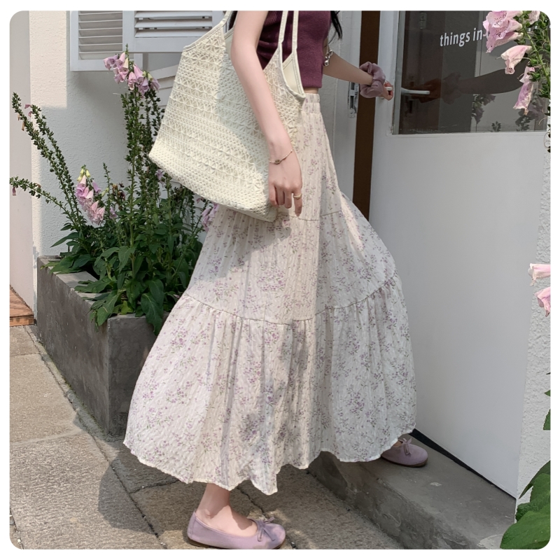 MY6349# 碎花雪纺半身裙女新款高腰显瘦仙女a字中长款蓬蓬蛋糕裙女裝貨源服裝批發