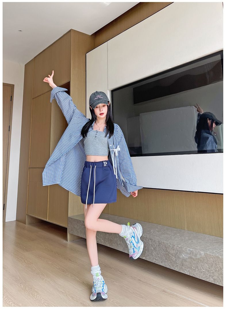 MY6381# 高腰a字半身裙包臀小个子辣妹灰色运动短裙女卫裙裤女裝貨源服裝批發
