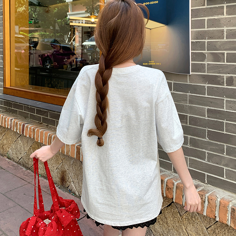 MY6562# 双纱短袖t恤夏蝴蝶结正肩印花中长宽松圆领上衣女装女裝貨源服裝批發